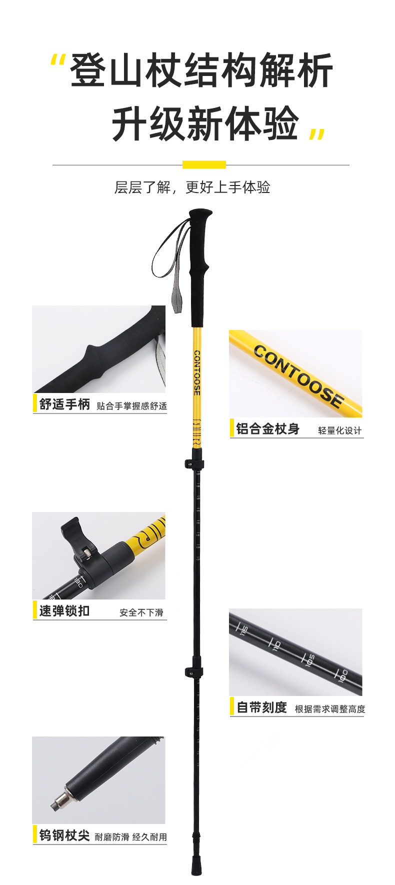Kuangtu 야외 어린이 등산 스틱 지팡이 초경량 하이킹 미끄럼 방지 목제 지팡이 탄소없는 다기능 등산 장비스토어 가기
