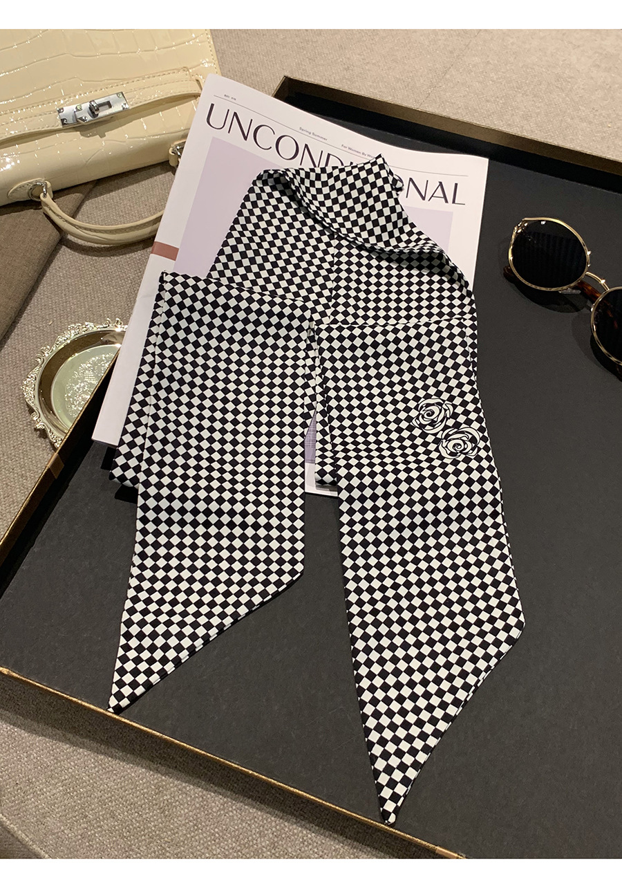 法式复古格纹细长丝巾女2025春新款高高级感时尚领巾发带腰带搭配