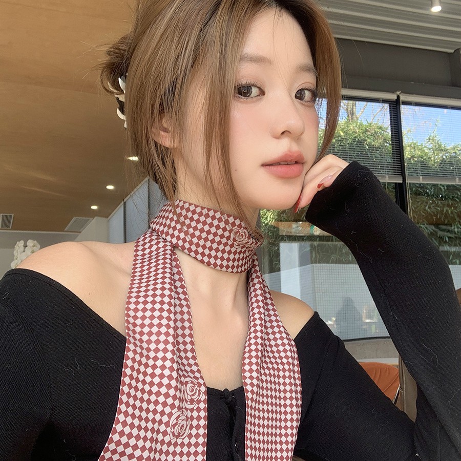 프랑스 스타일 빈티지 격자 무늬 스카프 여성의 2025 봄 새로운 하이 엔드 패션 스카프 헤어 벨트 벨트 정리스토어 가기