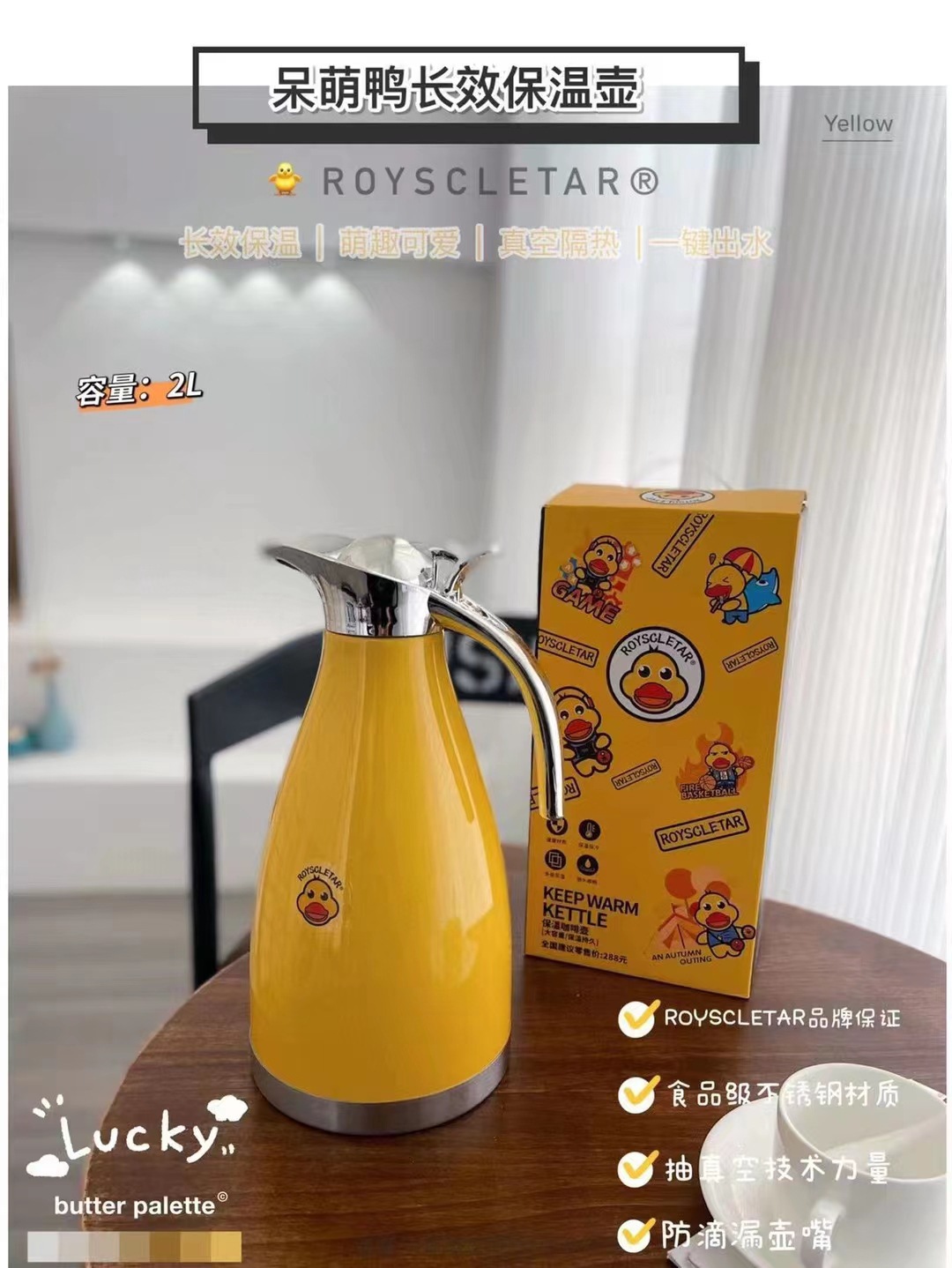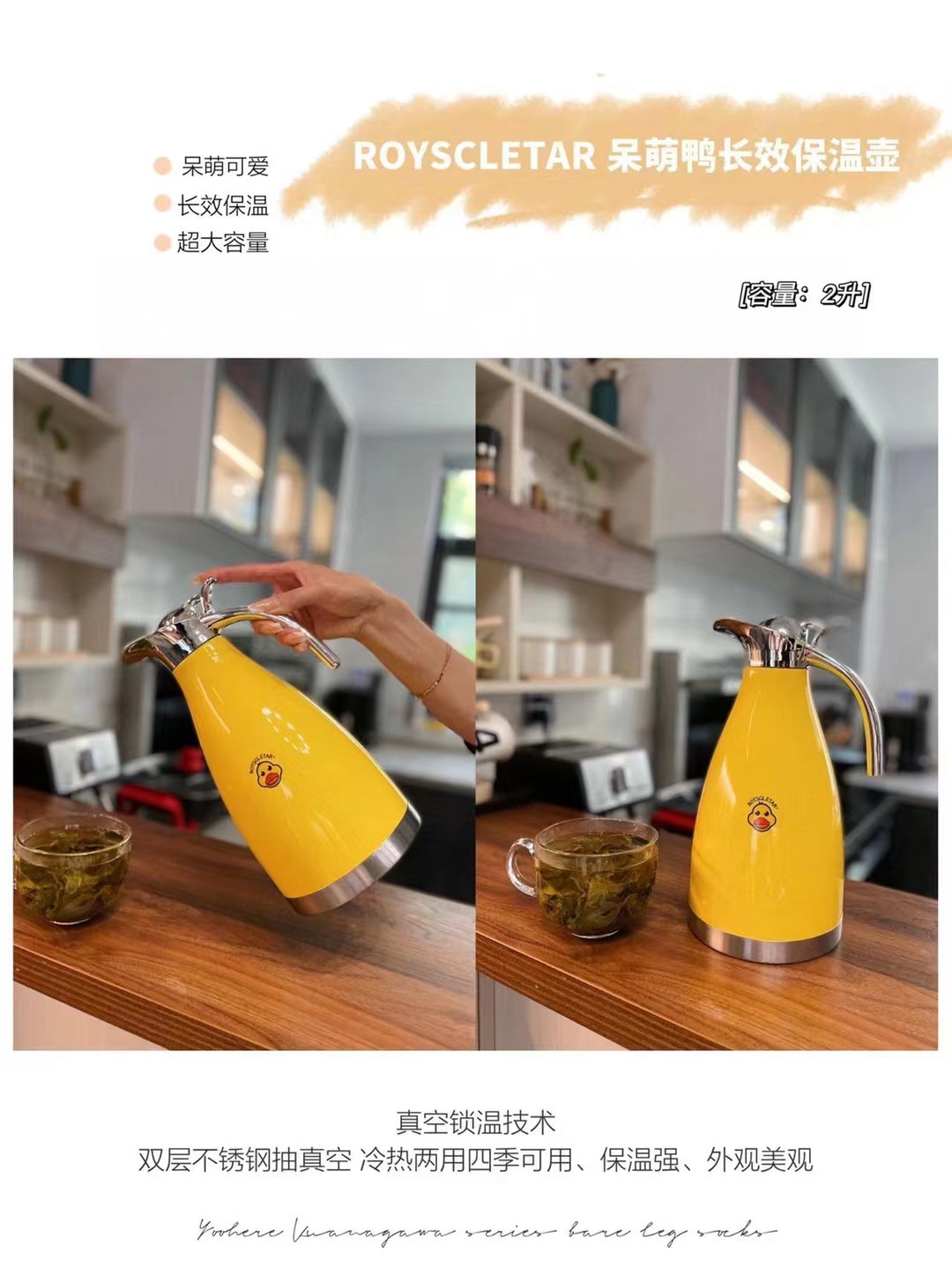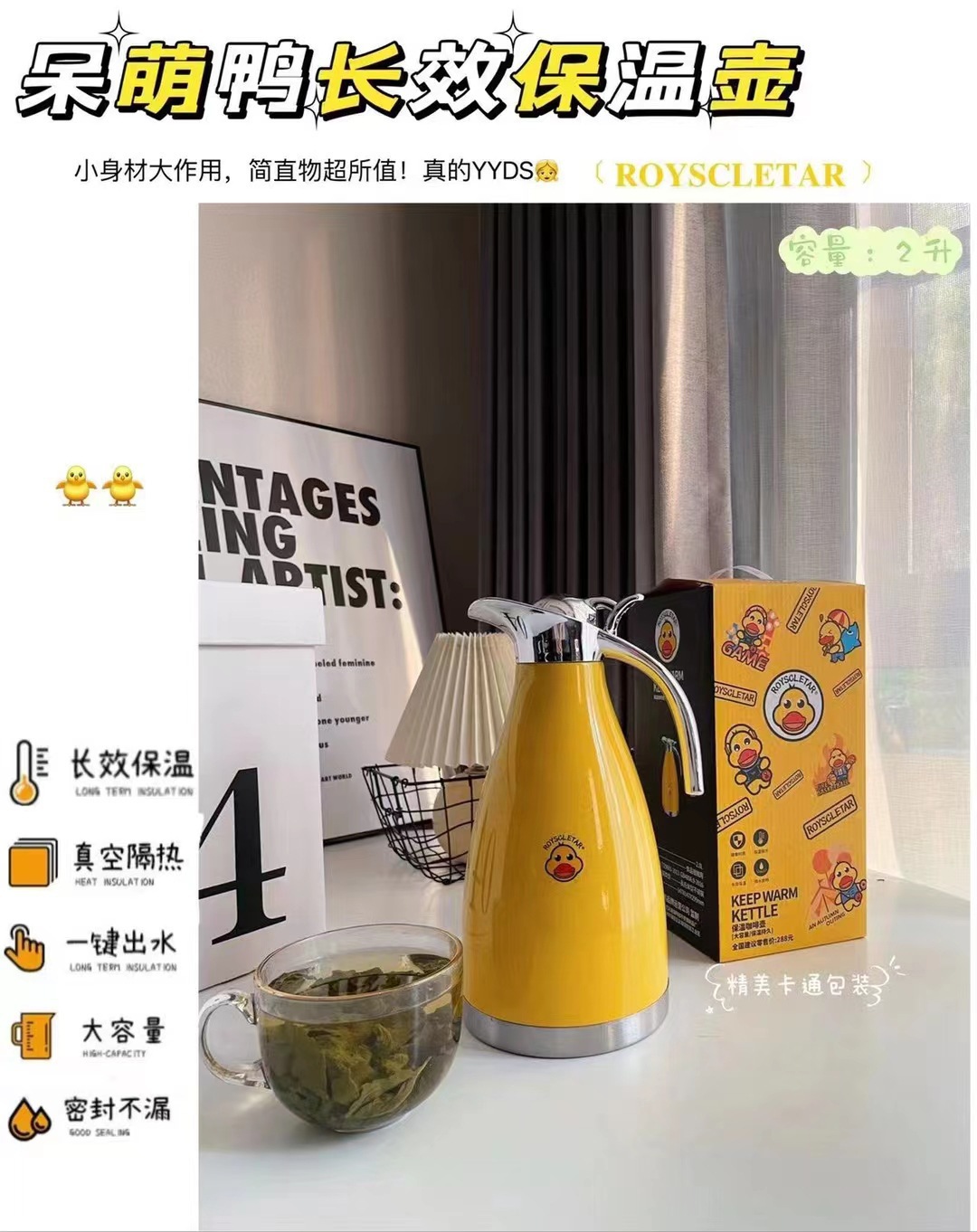 보온병 커피포트 가정용 대용량 화상방지 작은 노란 오리 스테인리스 선물 로고 인쇄 초대형 보온병