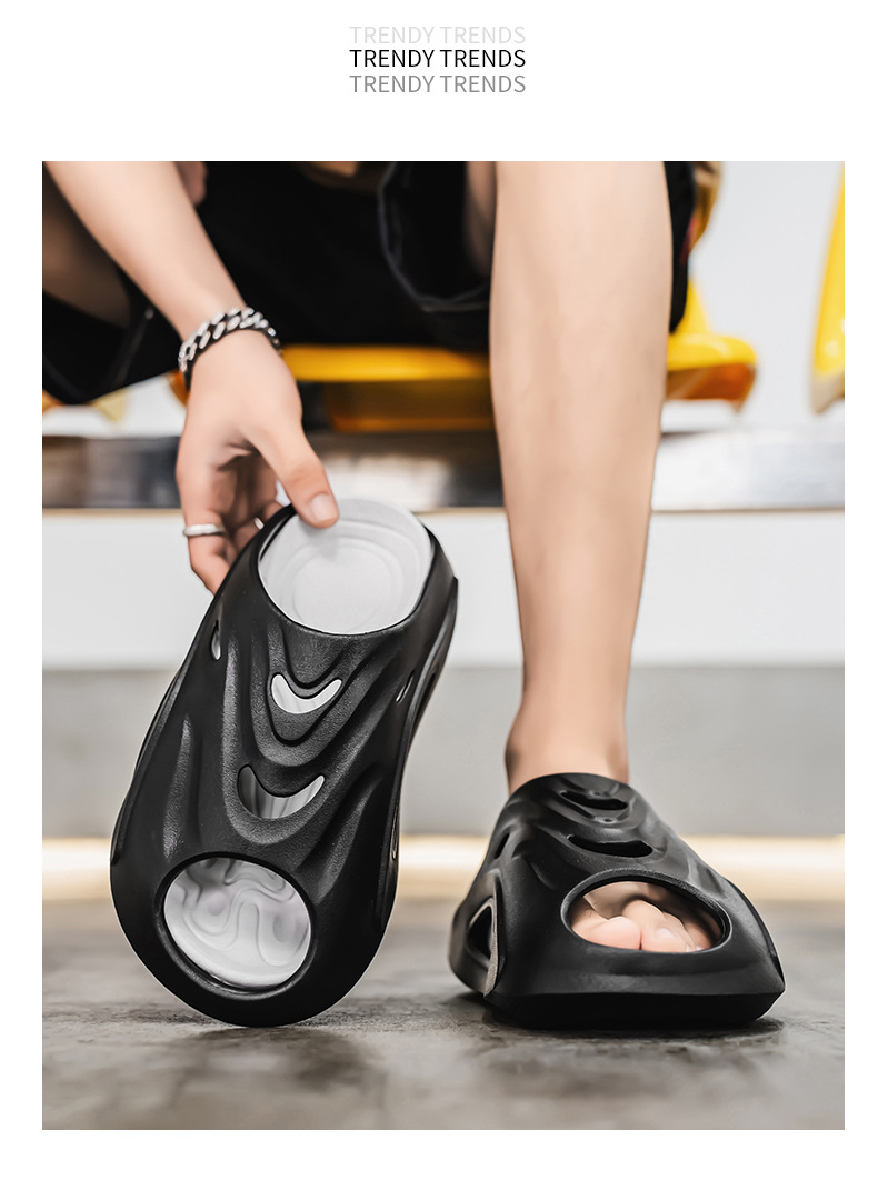 트렌디 한 브랜드 슬립 온 슬리퍼 남성 여름 2025 새로운 스타일 외부 착용 미끄럼 방지 홈 실내 EVA 샌들 비치 슈즈스토어 가기