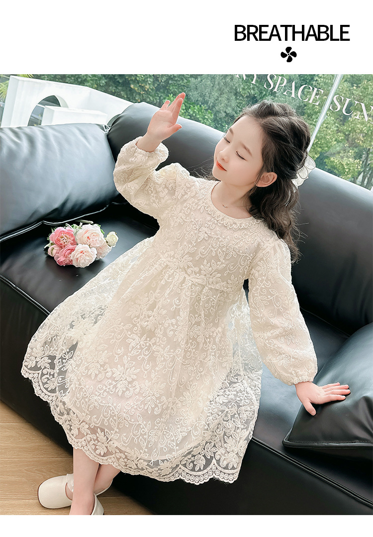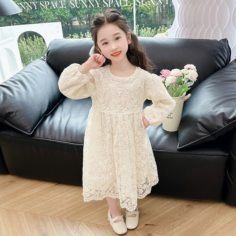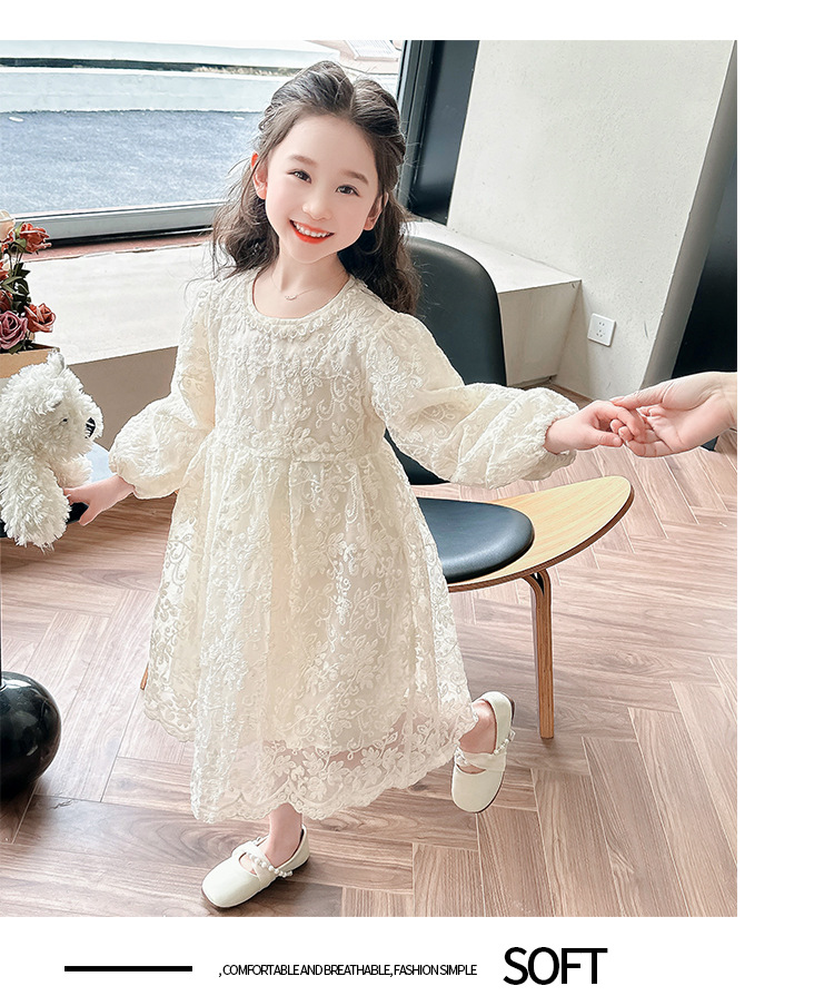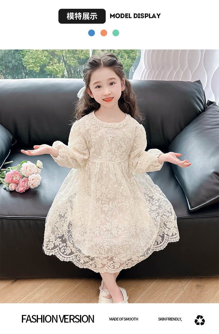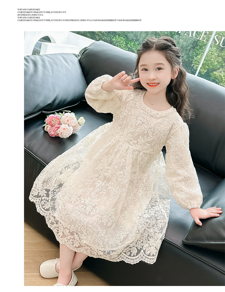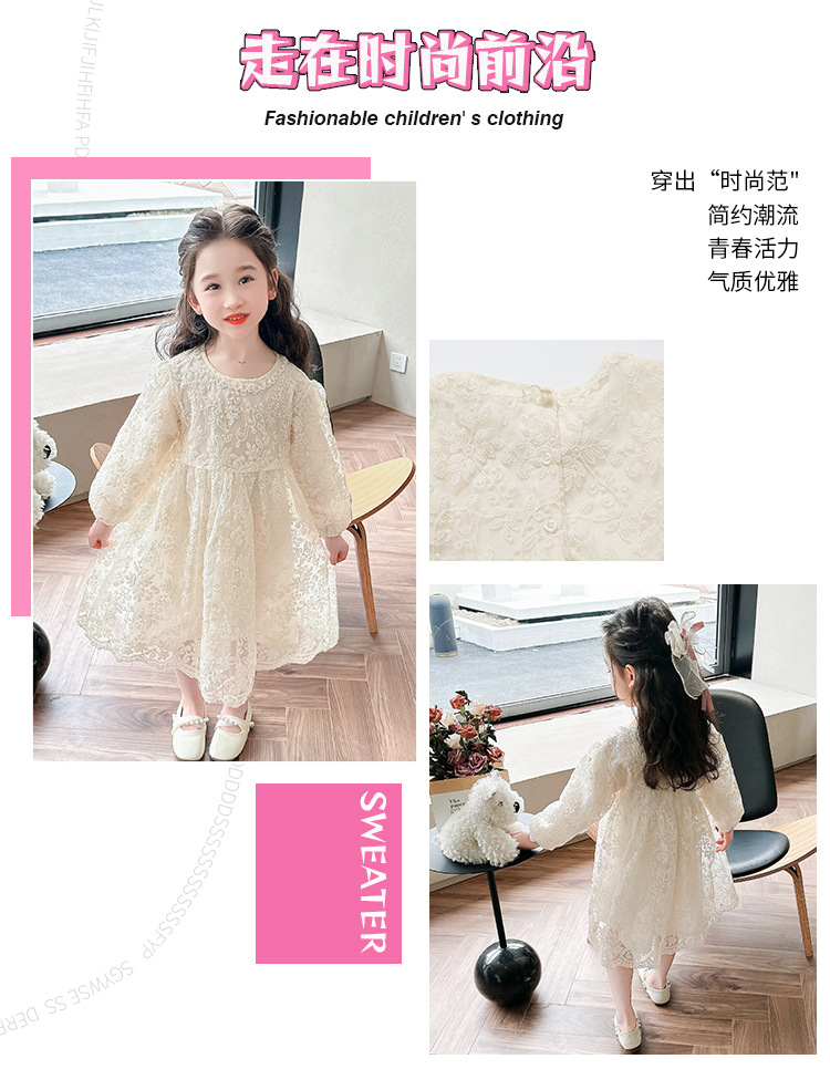 소녀 봄 원피스 서양식 패션 꽃 레이스 원피스 아기 소녀 긴 소매 봄과 가을 달콤한 공주 원피스 새로운