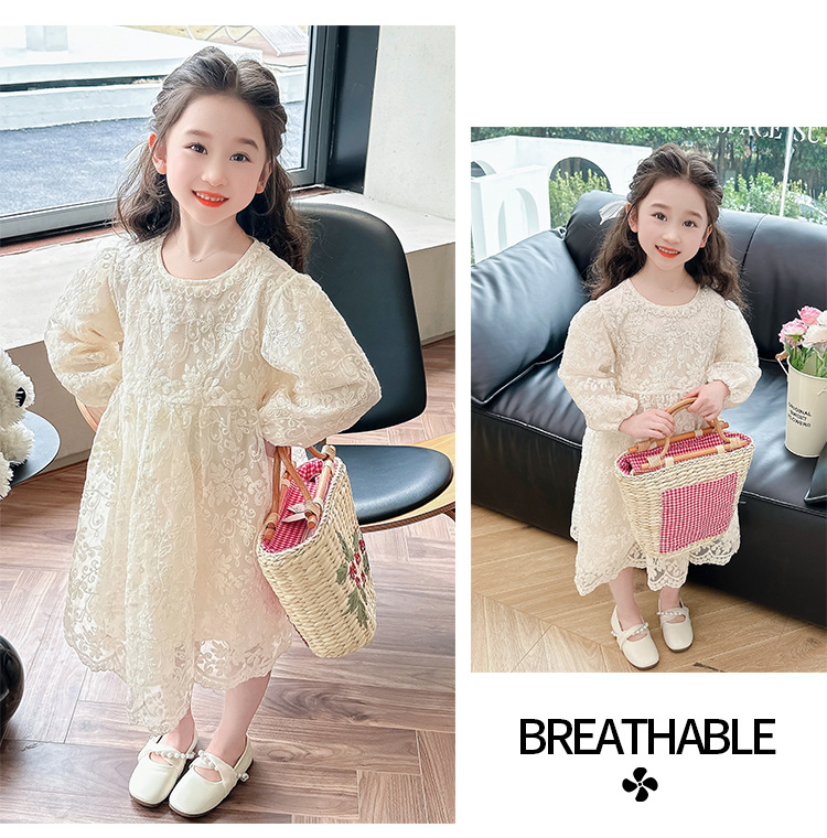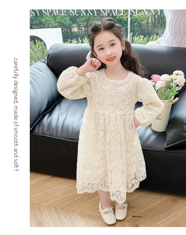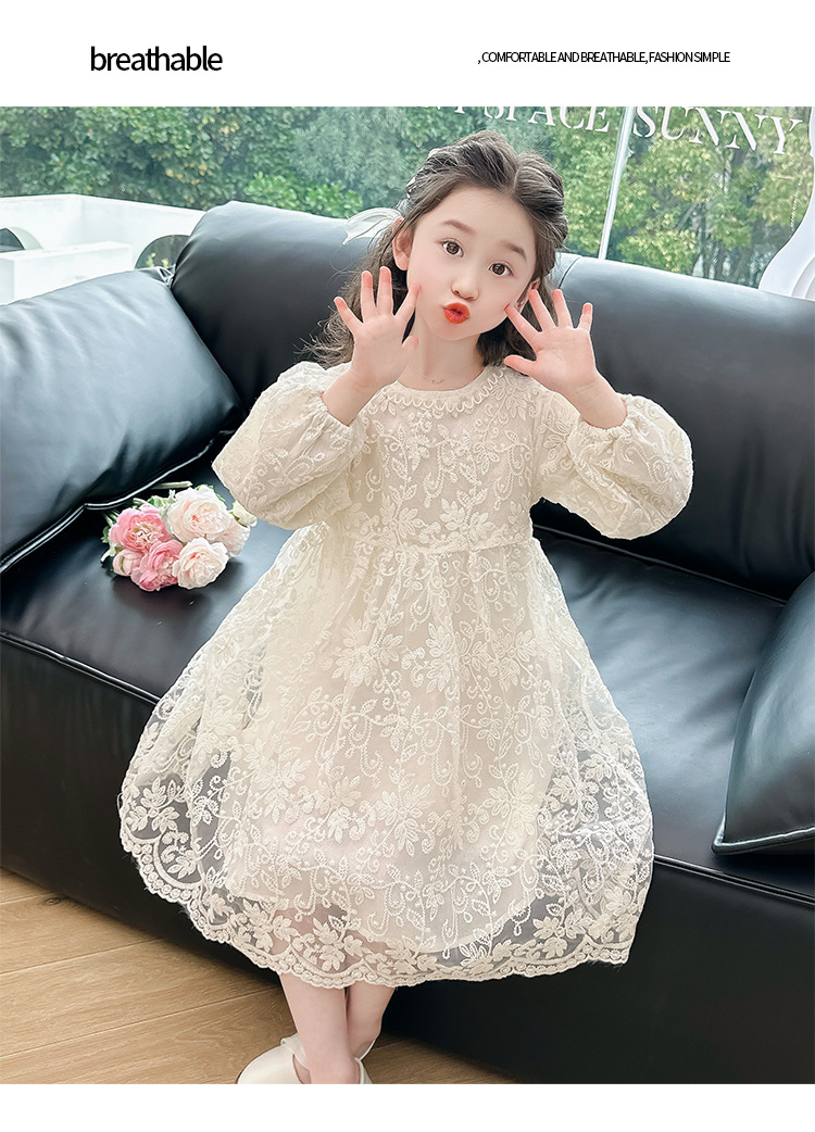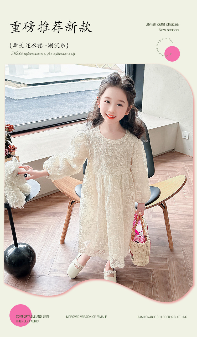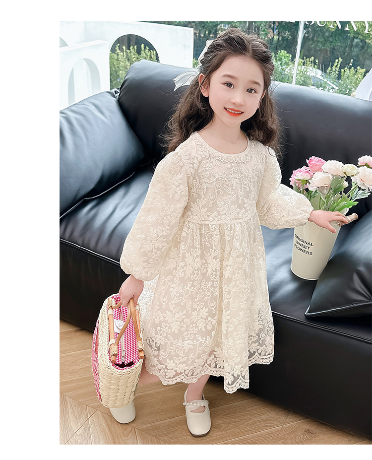 소녀 봄 원피스 서양식 패션 꽃 레이스 원피스 아기 소녀 긴 소매 봄과 가을 달콤한 공주 원피스 새로운