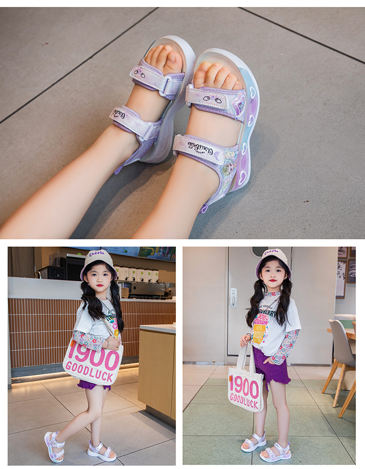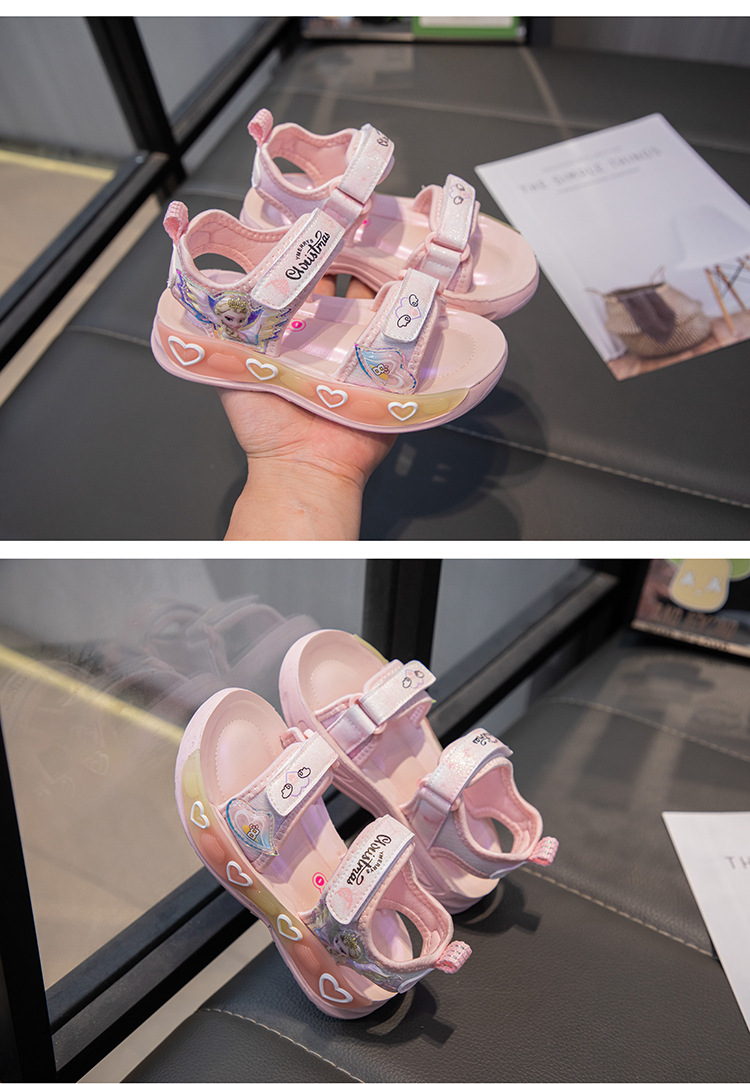 소녀의 만화 공주 샌들 2025 여름 새로운 어린이 하이 퀄리티 소프트 단독 미끄럼 방지 미드 빅 어린이 올 매치 비치 슈즈