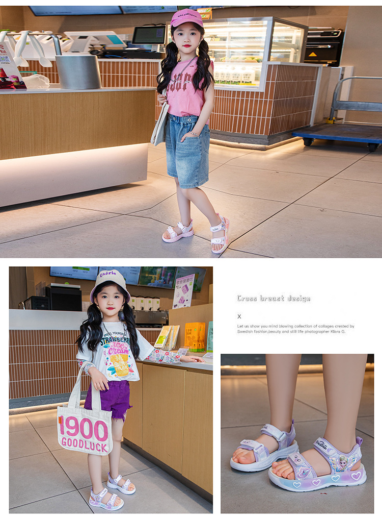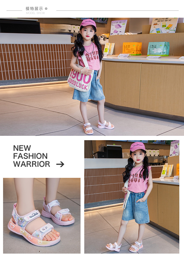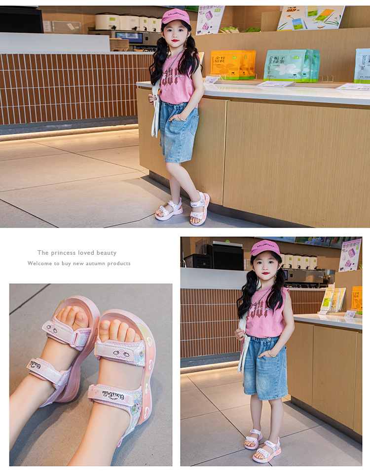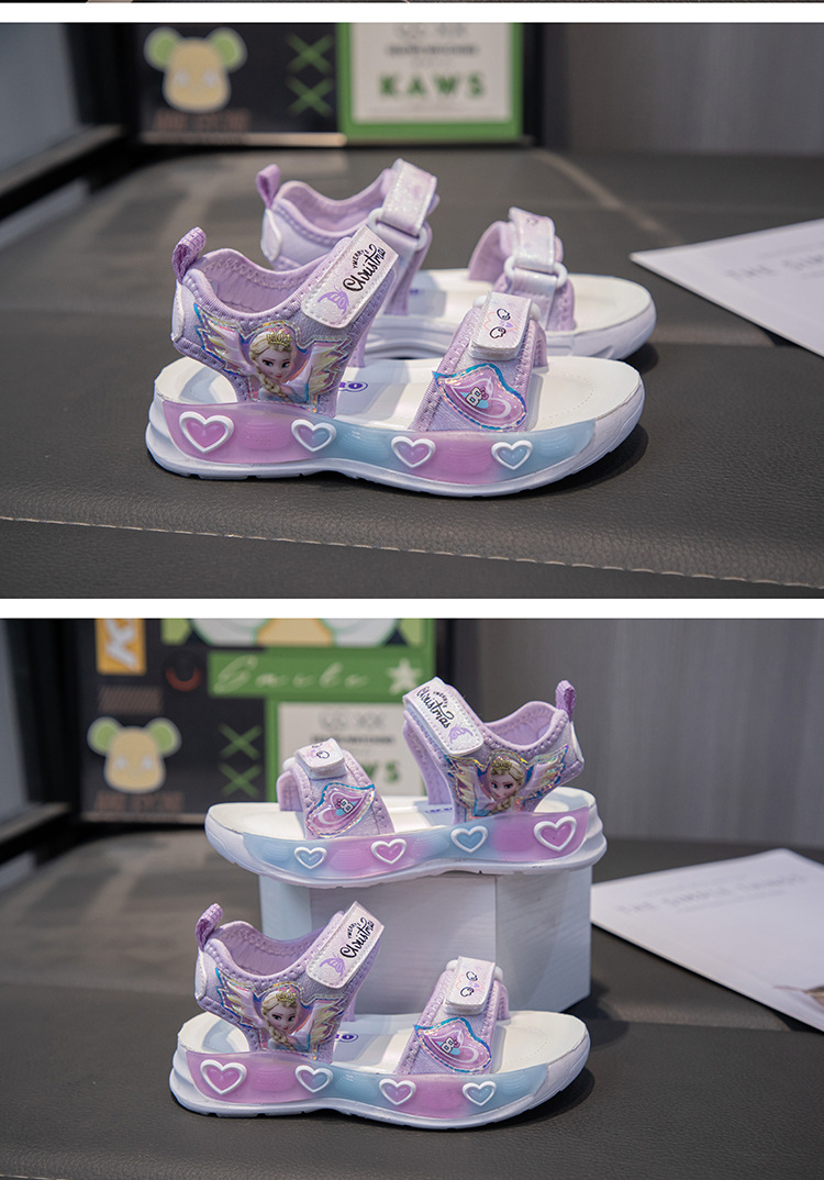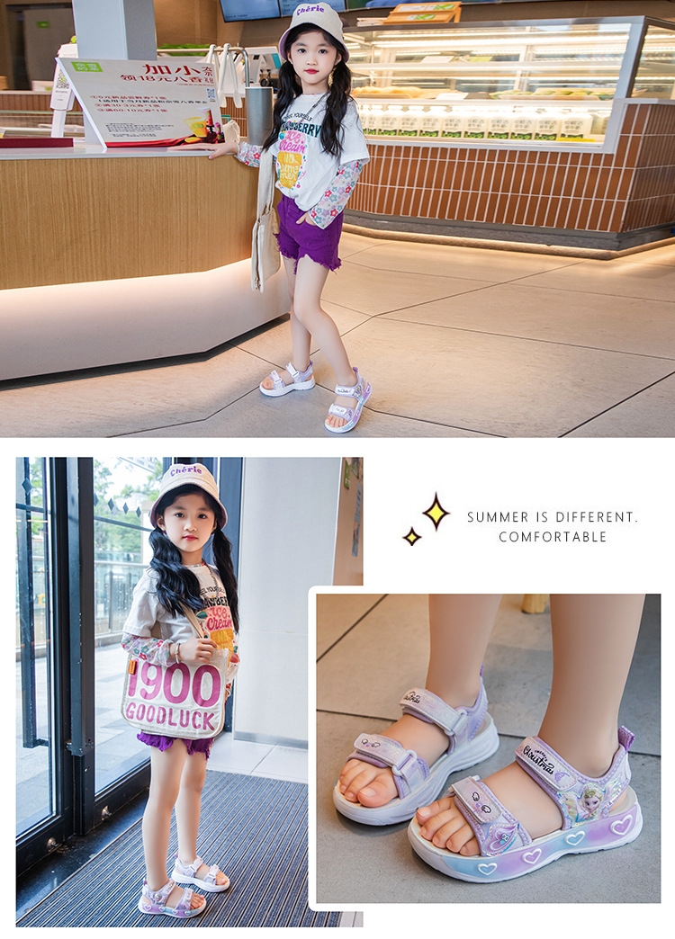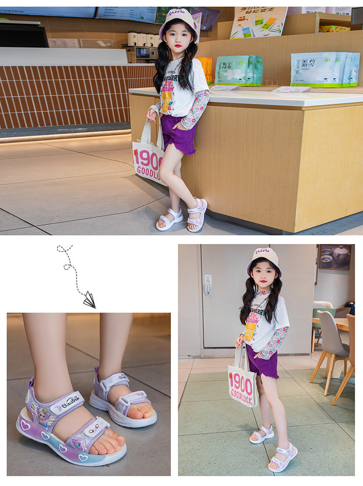 소녀의 만화 공주 샌들 2025 여름 새로운 어린이 하이 퀄리티 소프트 단독 미끄럼 방지 미드 빅 어린이 올 매치 비치 슈즈스토어 가기