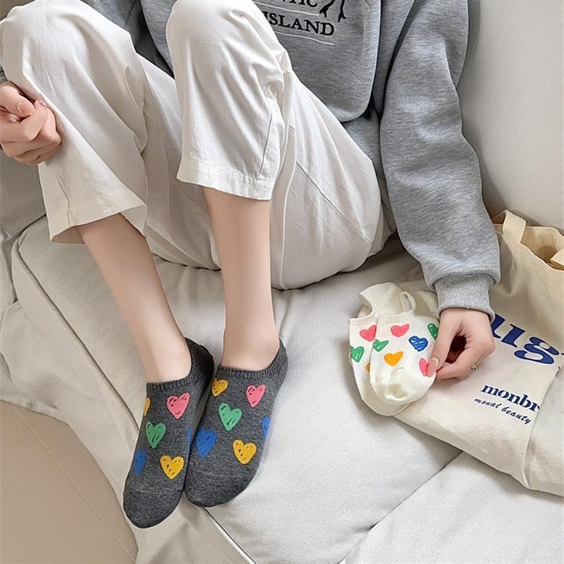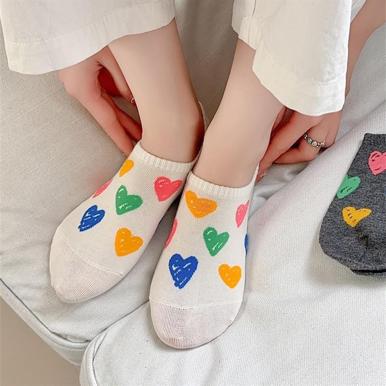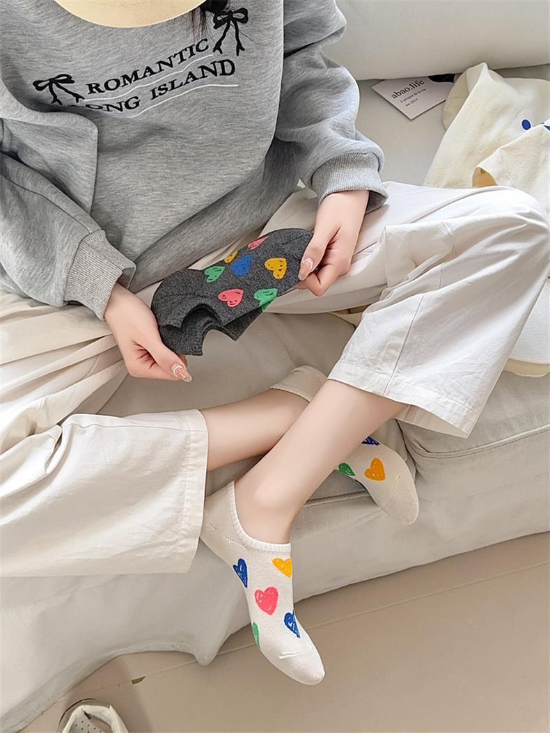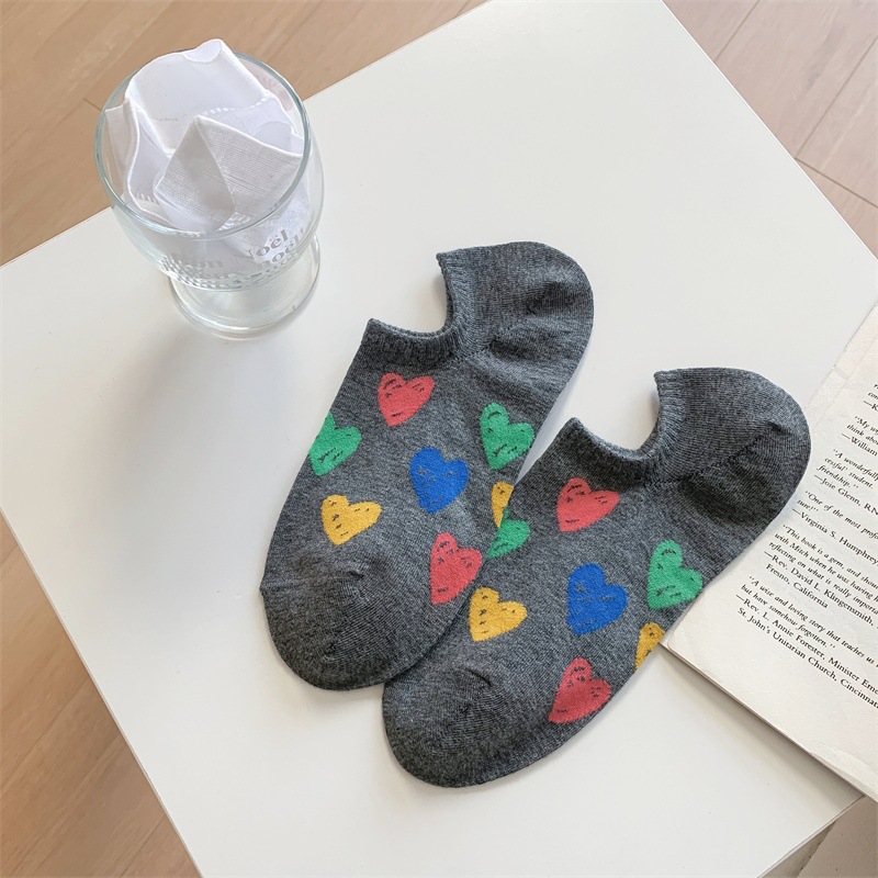 한국 동대문 여름 얇은 배 양말 여성 일본색 낙서 사랑 실리콘은 순면 보이지 않는 양말로 떨어지지 않는다스토어 가기