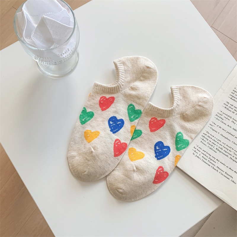한국 동대문 여름 얇은 배 양말 여성 일본색 낙서 사랑 실리콘은 순면 보이지 않는 양말로 떨어지지 않는다