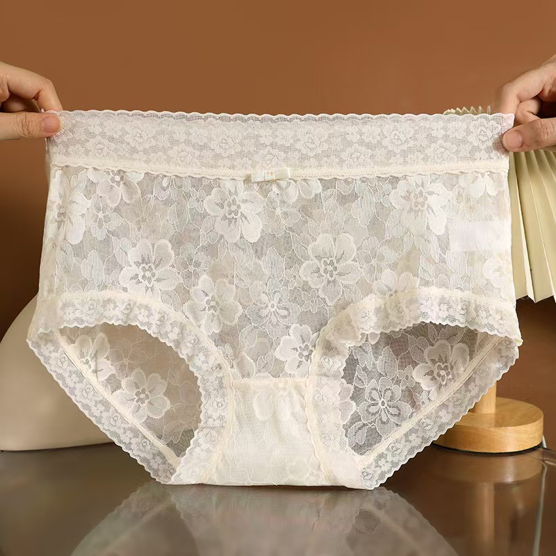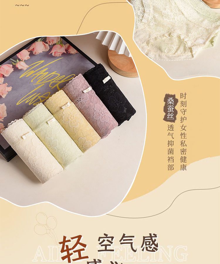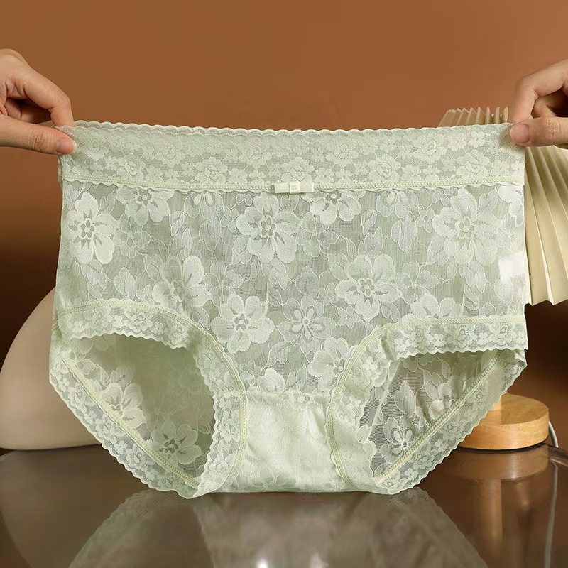 프랑스 스타일 레이스 속옷 여성용 Traceless Mulberry 실크 항균 플러스 사이즈 중반 허리 피부 친화적 인 통기성 섹시한 여성 브리프