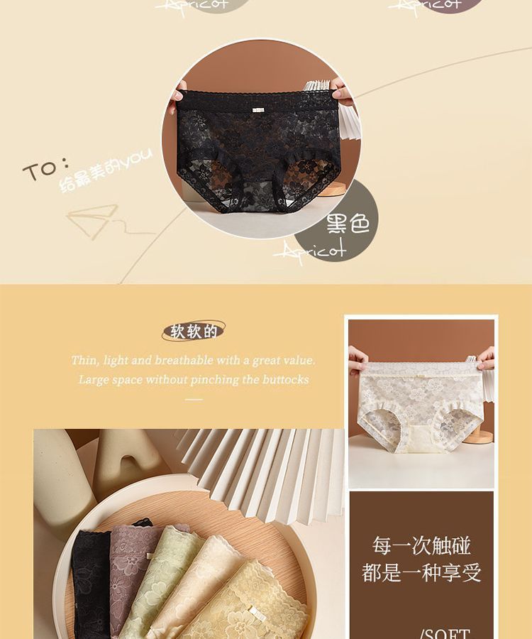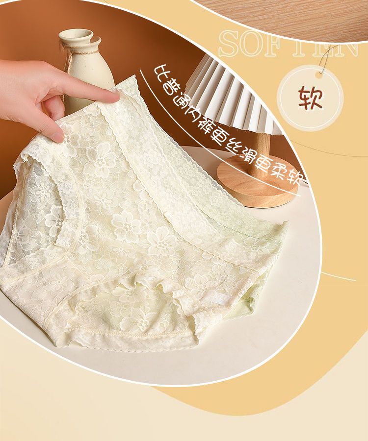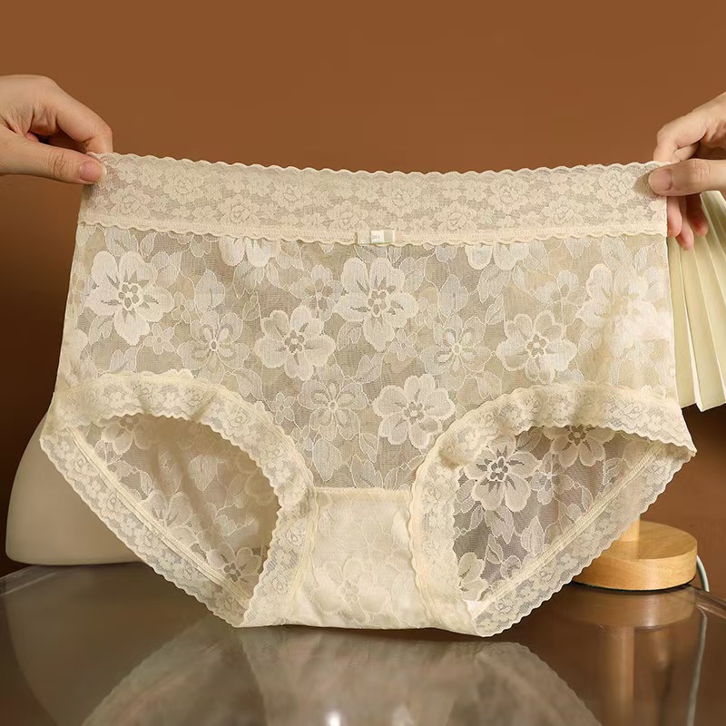 프랑스 스타일 레이스 속옷 여성용 Traceless Mulberry 실크 항균 플러스 사이즈 중반 허리 피부 친화적 인 통기성 섹시한 여성 브리프스토어 가기