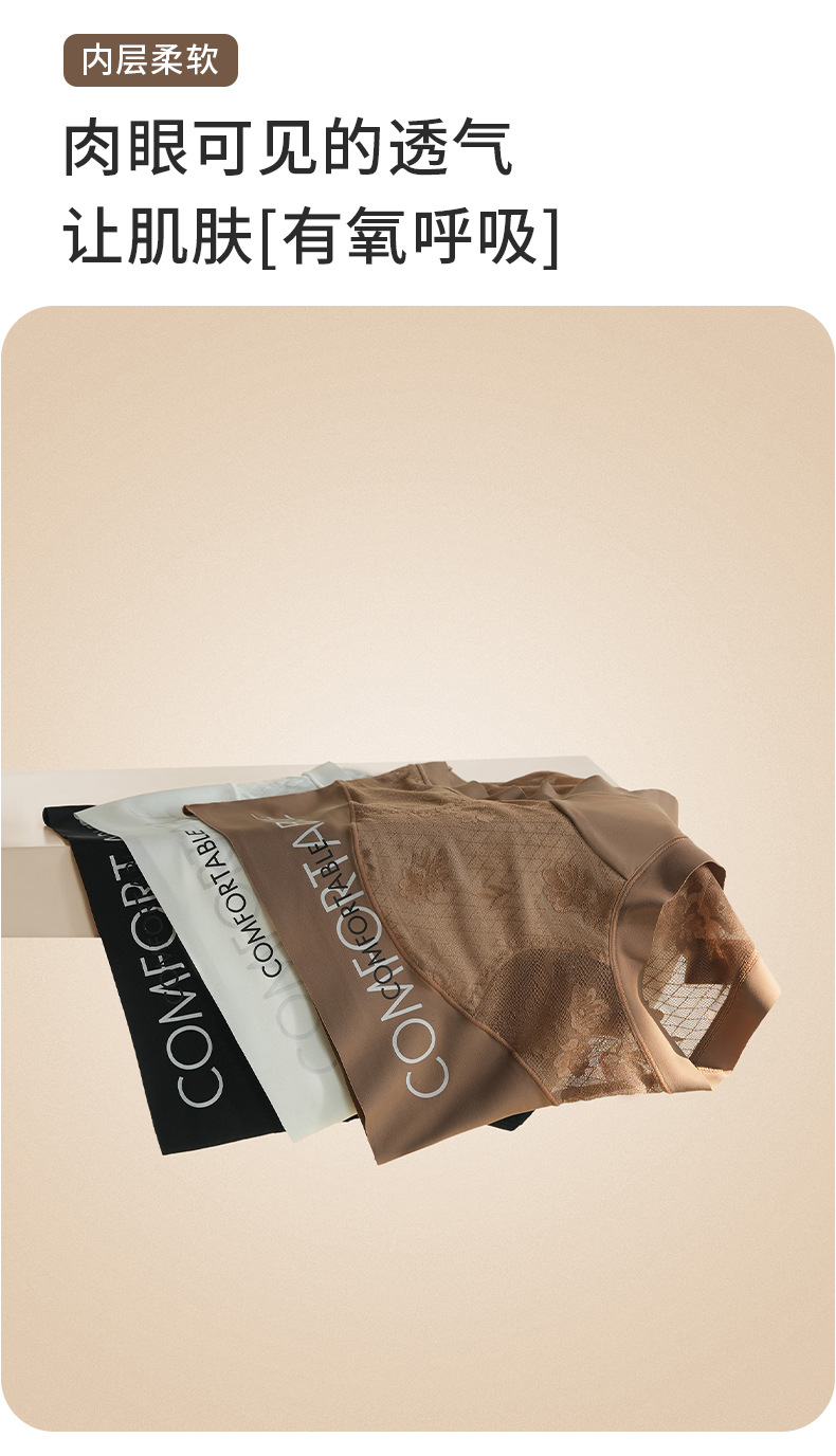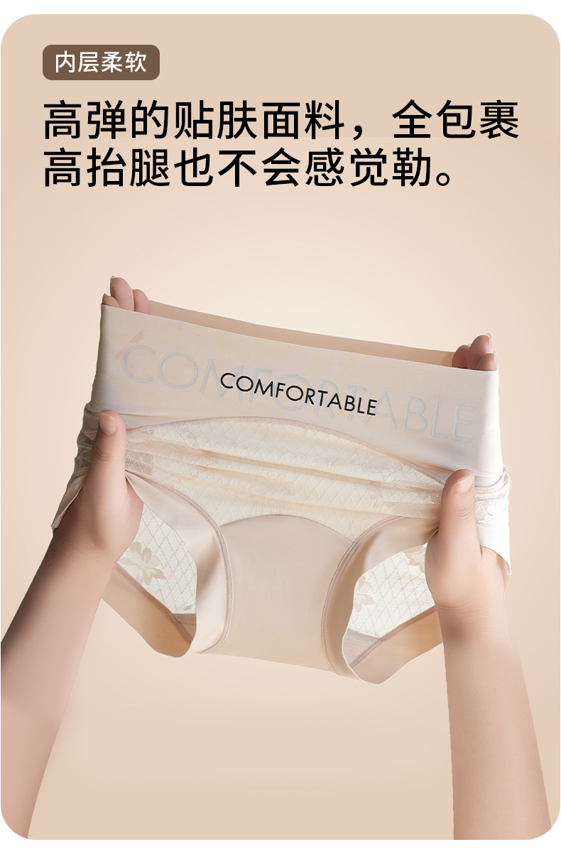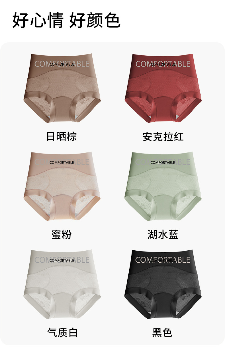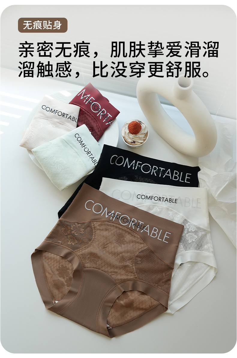 # 2508 # 하이웨이스트, 심리스, 가벼운 뱃살 조절 섹시 레이스 팬티, 여성용 편안한 실크 가랑이 엉덩이 커버 팬티 Douyin스토어 가기