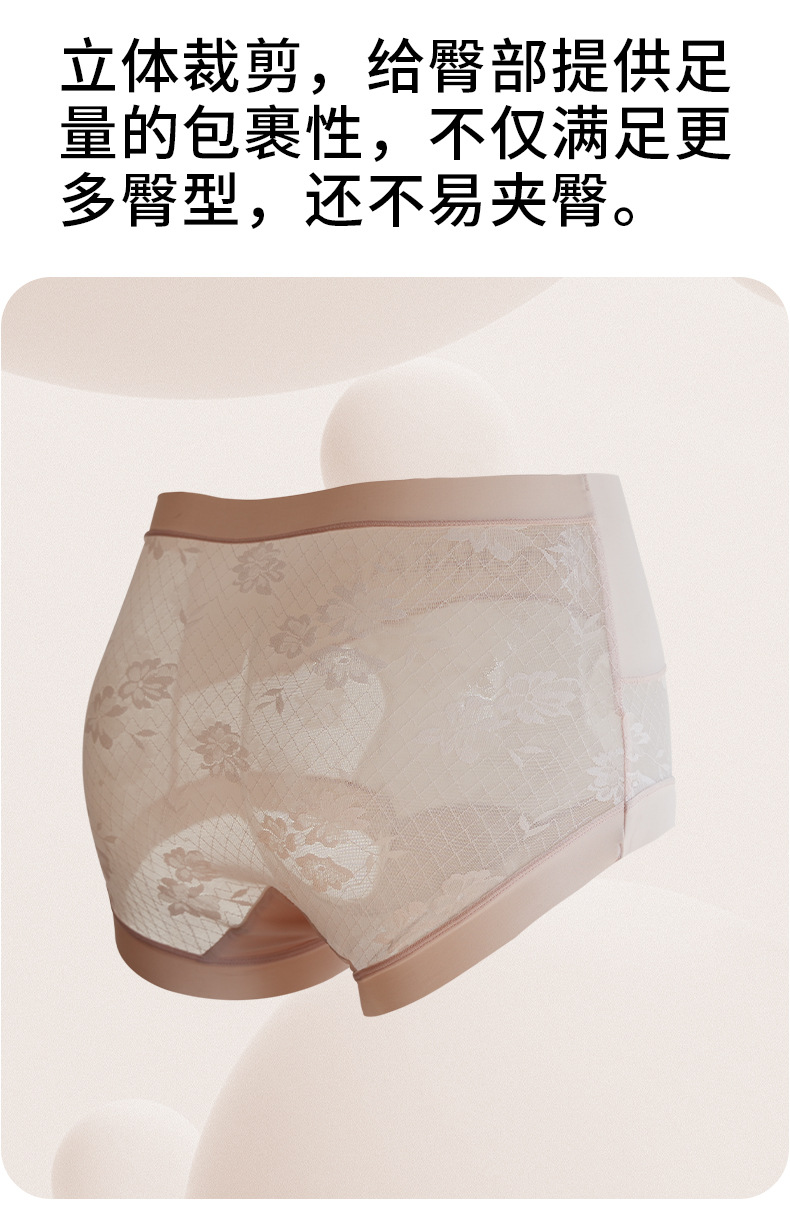 # 2508 # 하이웨이스트, 심리스, 가벼운 뱃살 조절 섹시 레이스 팬티, 여성용 편안한 실크 가랑이 엉덩이 커버 팬티 Douyin
