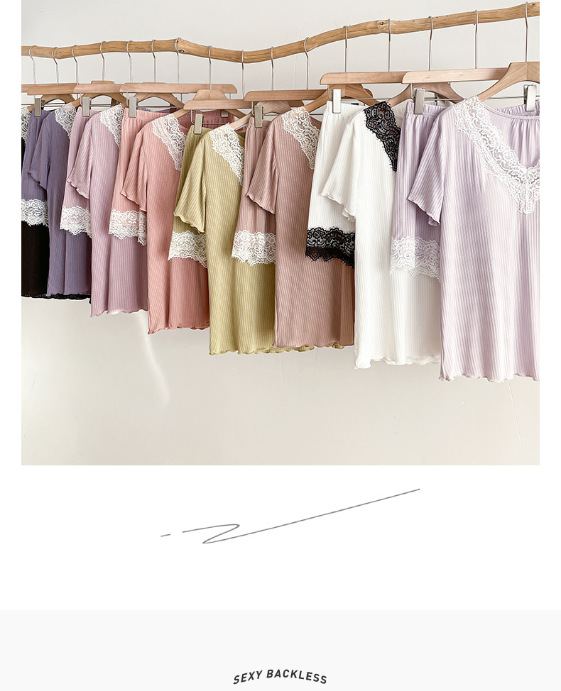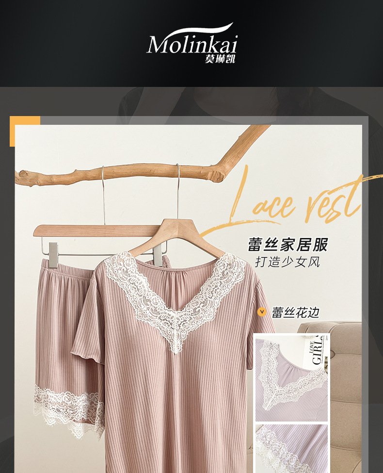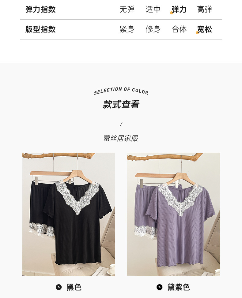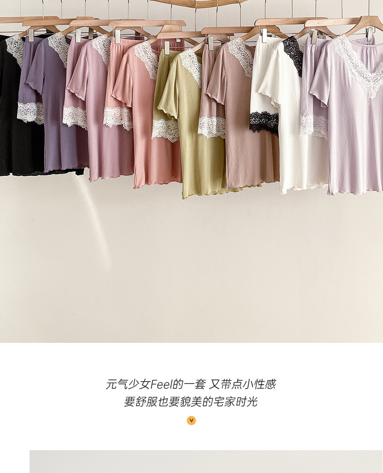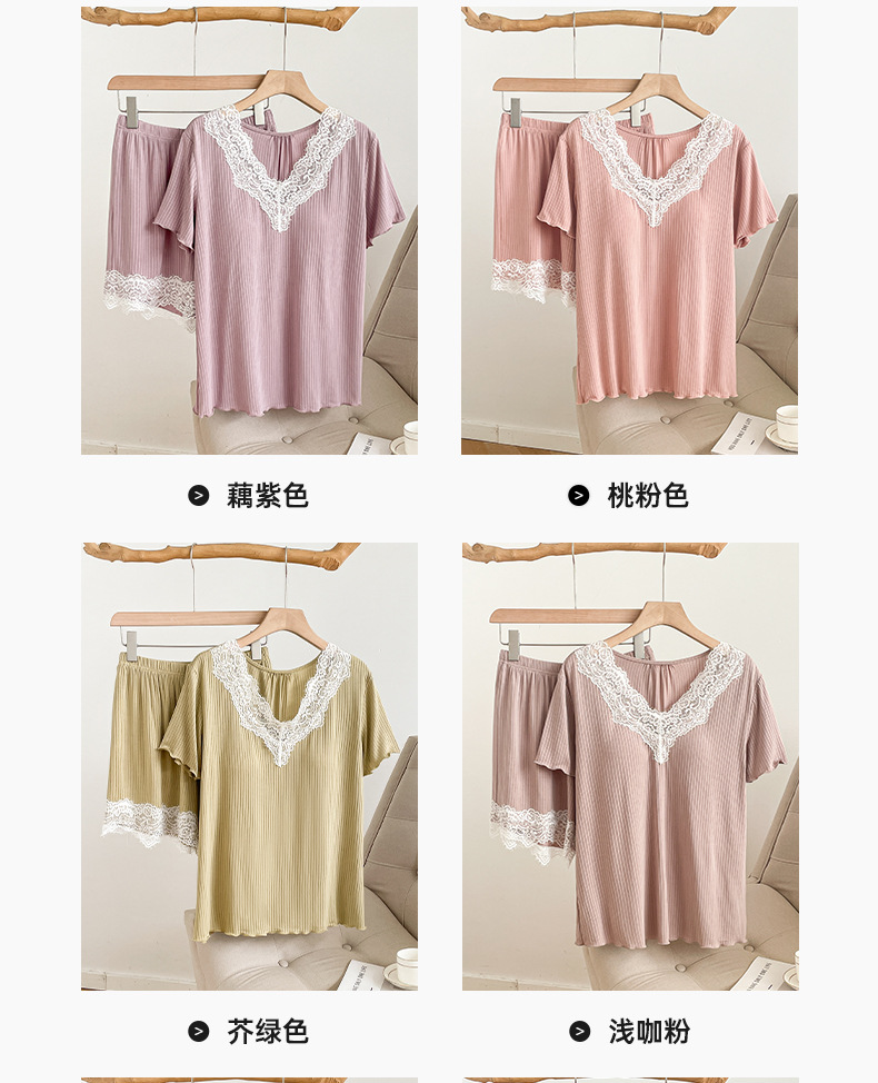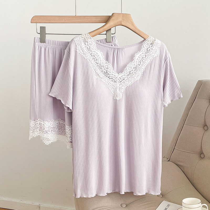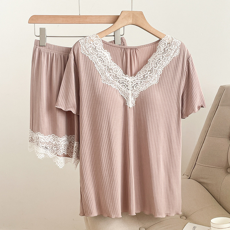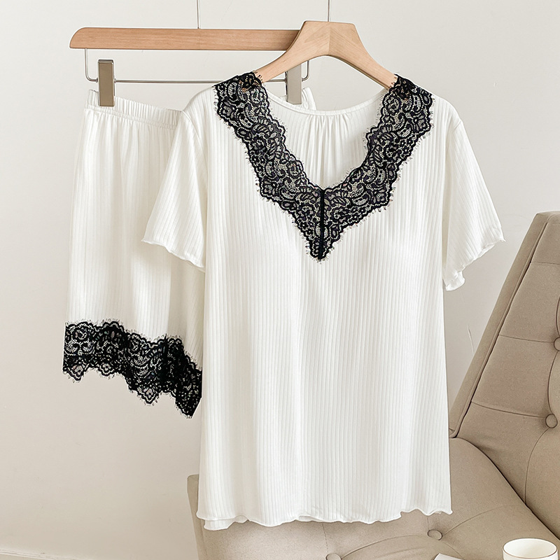 여름 잠옷 세트 여성 투피스 복장 레이스 홈 옷 반팔 반바지 홈 옷 캐주얼 한 가슴 패드스토어 가기