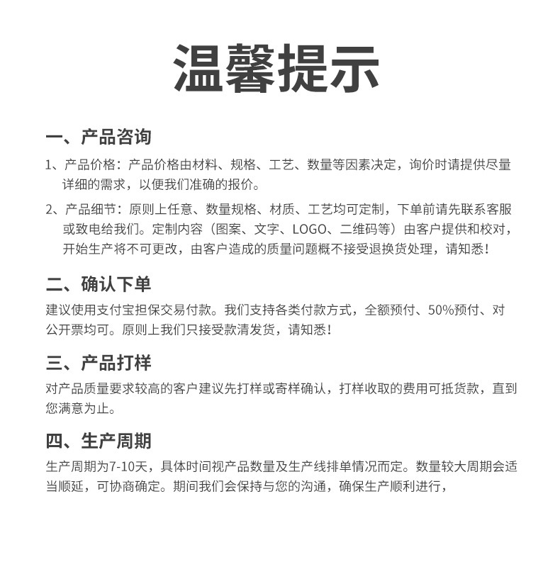 • 제품은 모두 맞춤형 제품이며 최소 주문 수량은 100개, 길이 20, 높이 18, 측면 10, 65cmx3.2cm입니다.