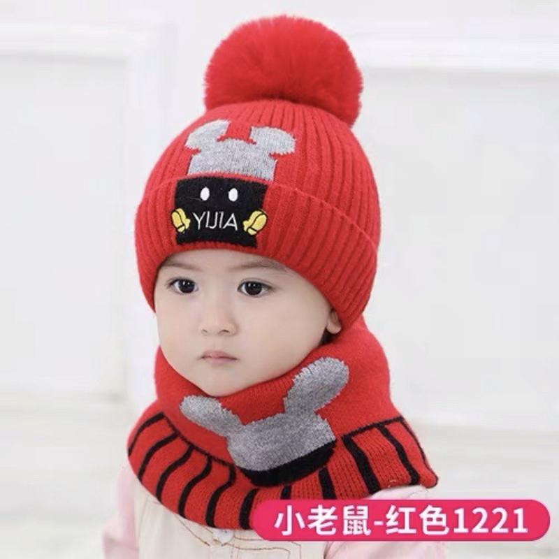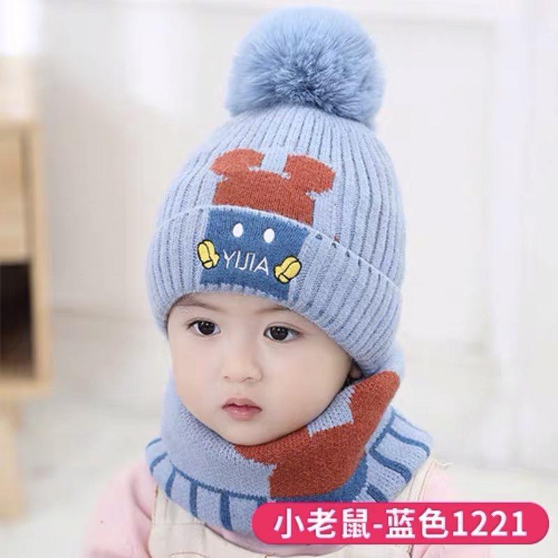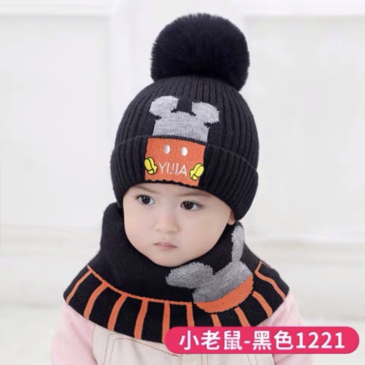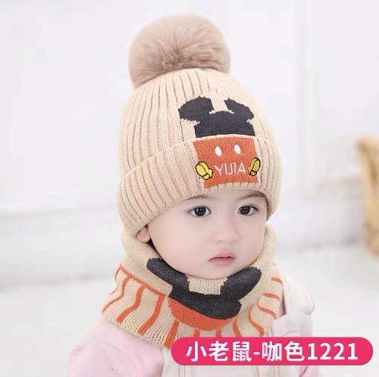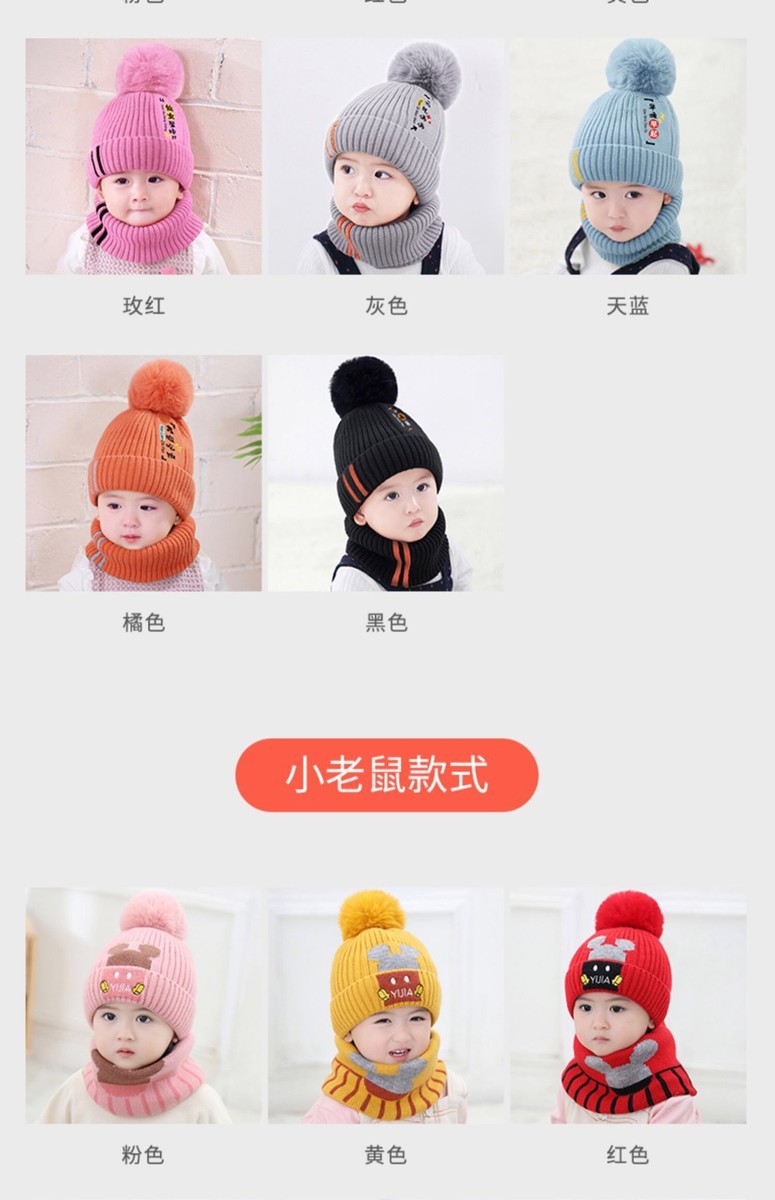 어린이 모자 스카프 세트 유아 두꺼운 따뜻한 양모 아기 소년과 소녀 목 귀 보호자 두 조각 모자 겨울스토어 가기