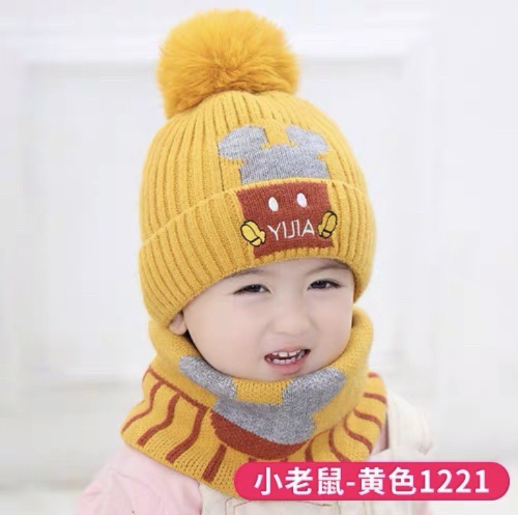• 작은 쥐 노란색(모자+스카프, 벨벳 없는 스카프)