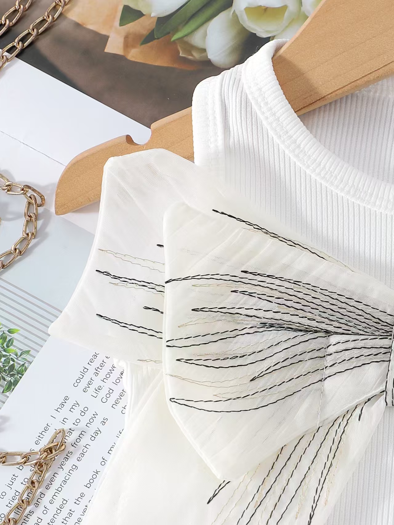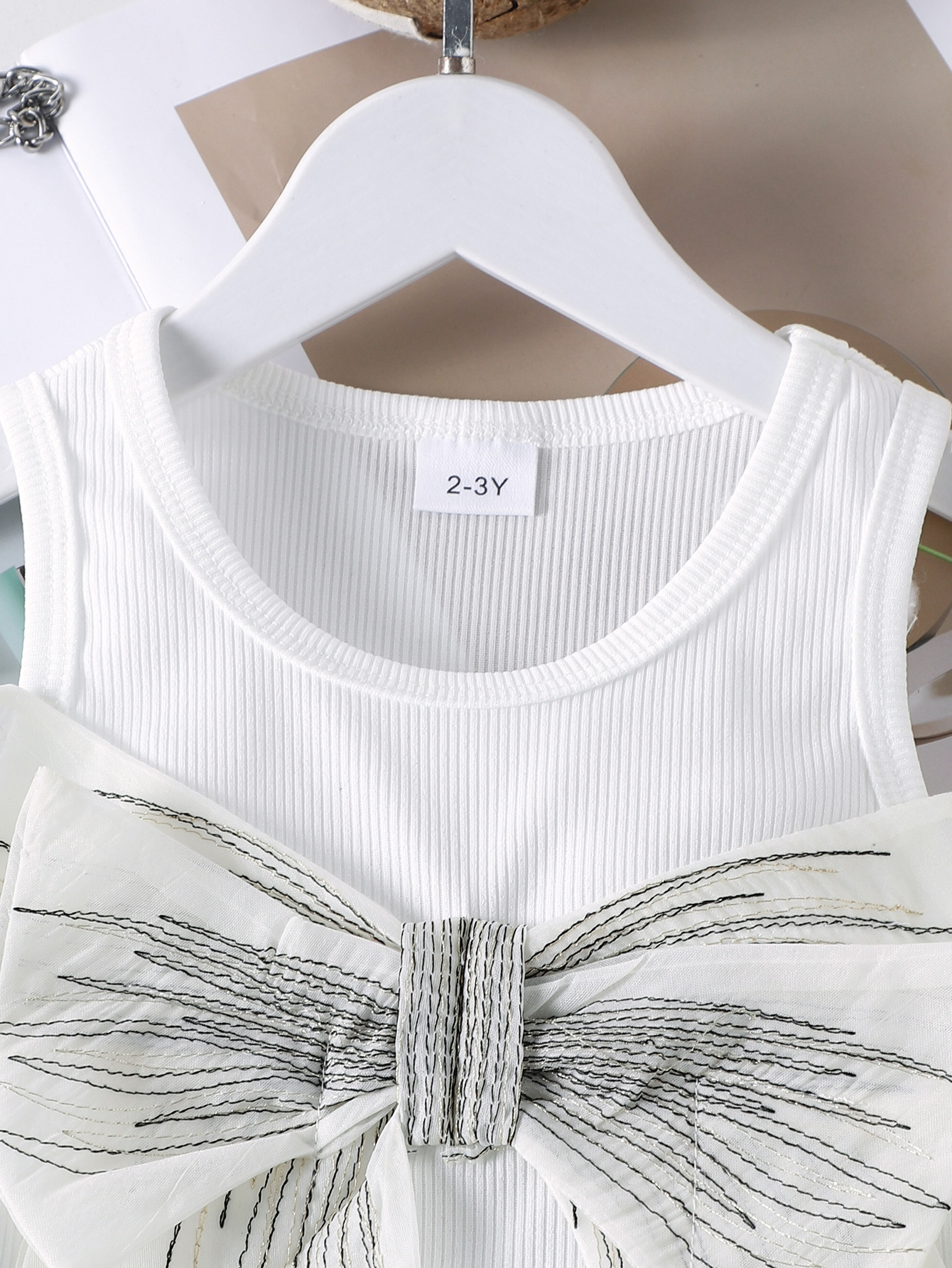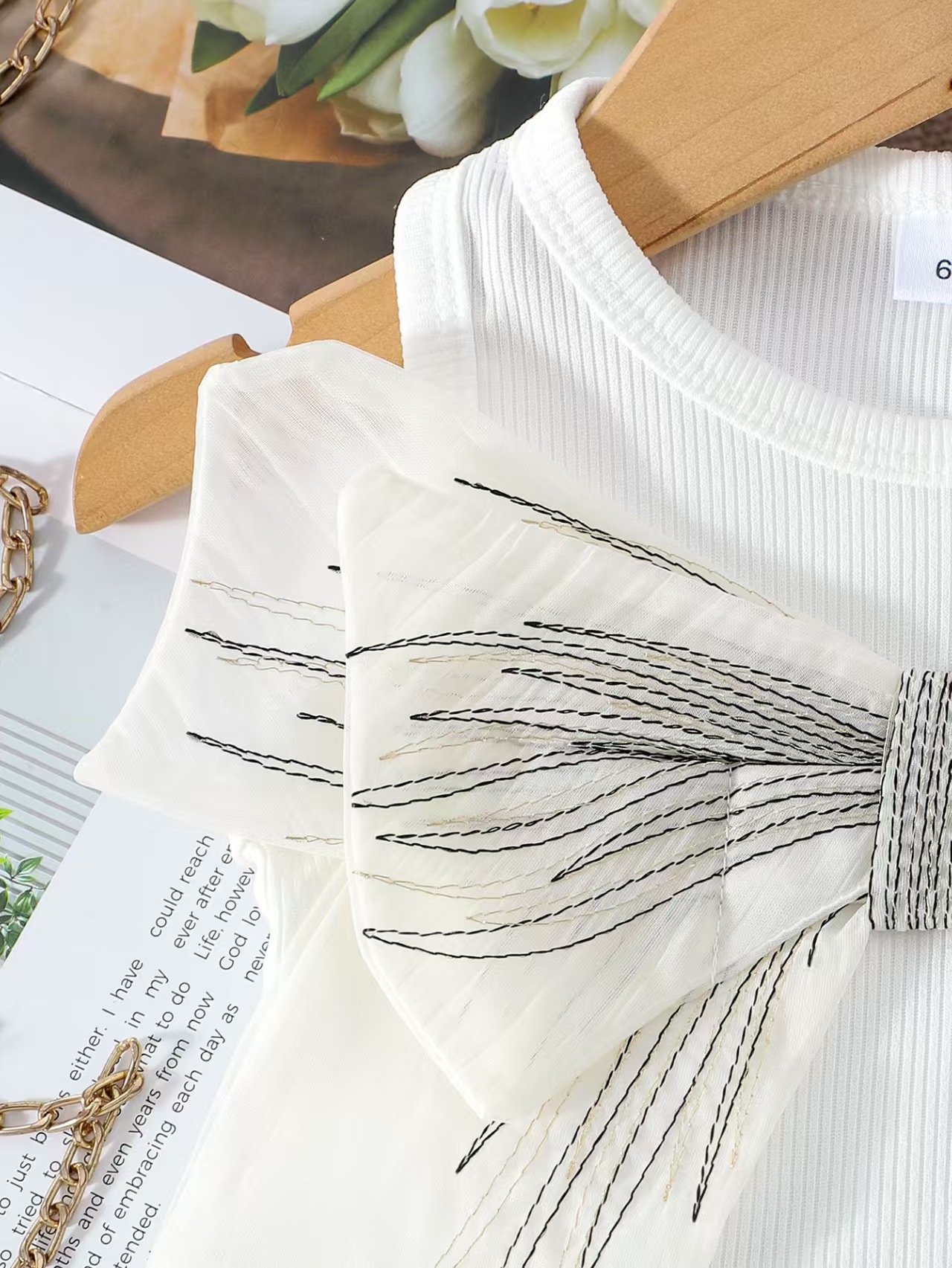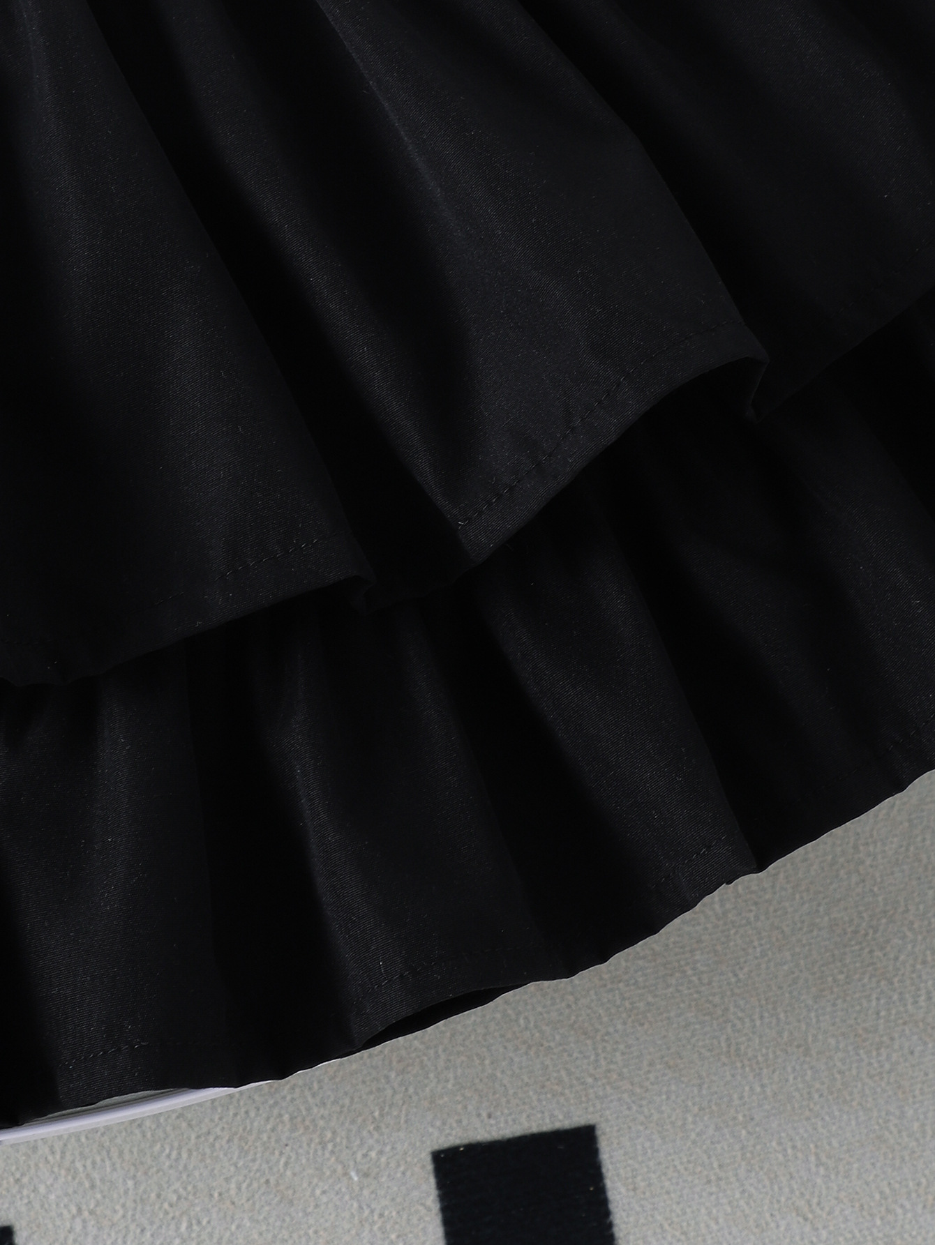 아동복 해외 유럽 및 미국 스타일 여아용 흰색 리본 셔츠+검정 케이크 스커트 세트