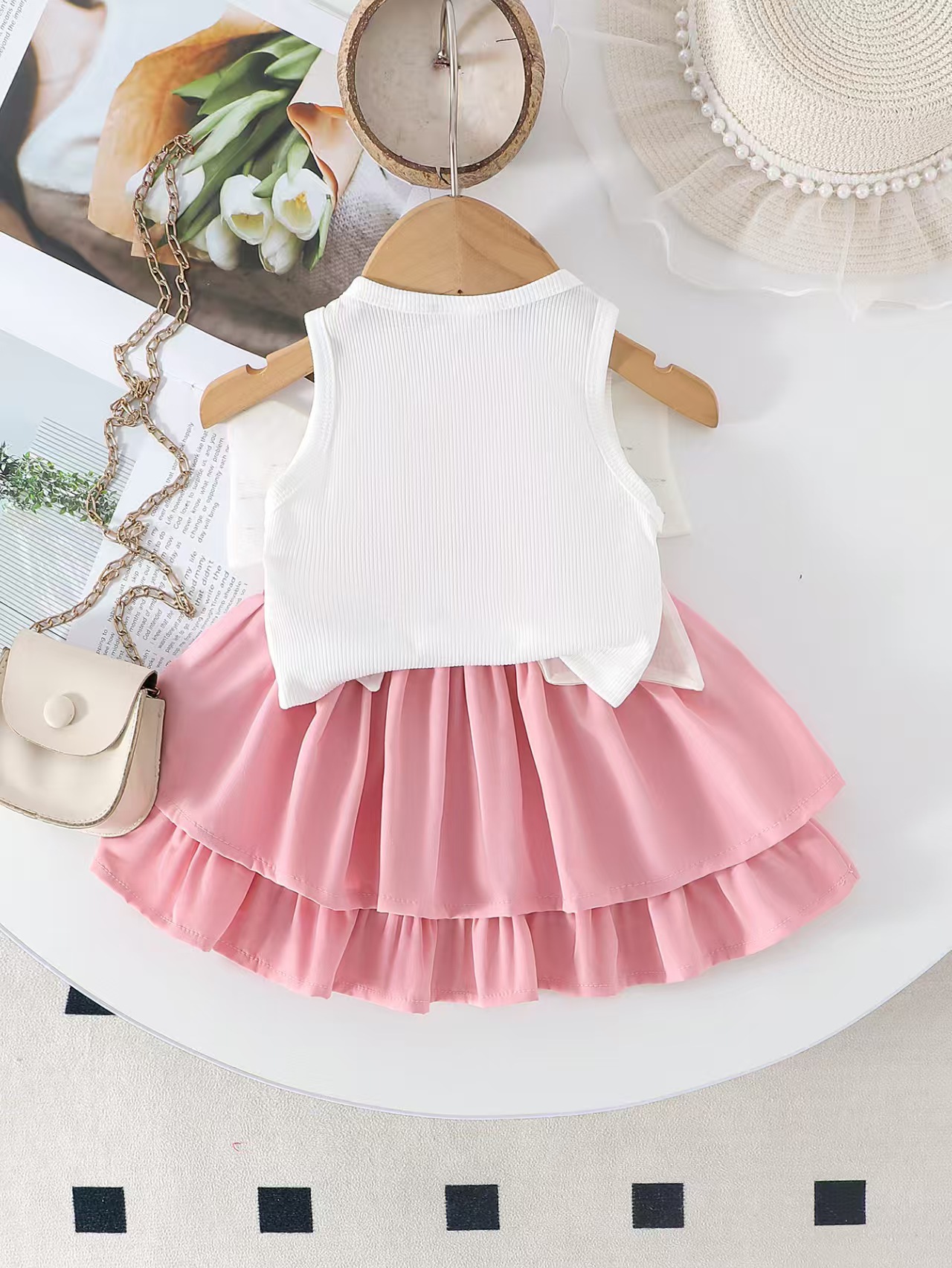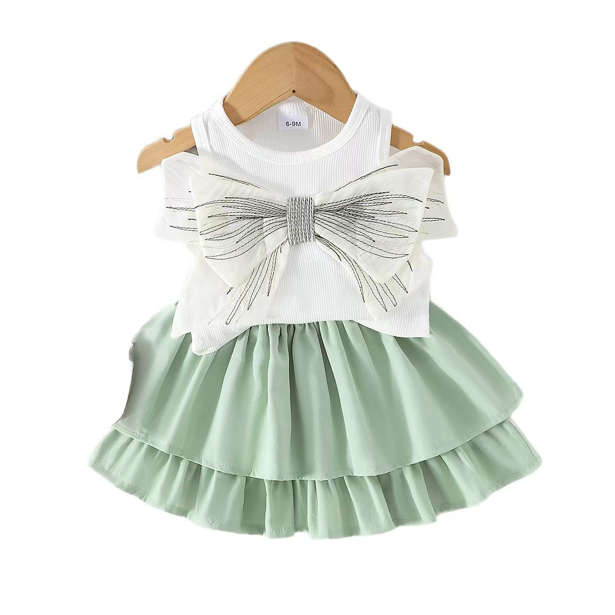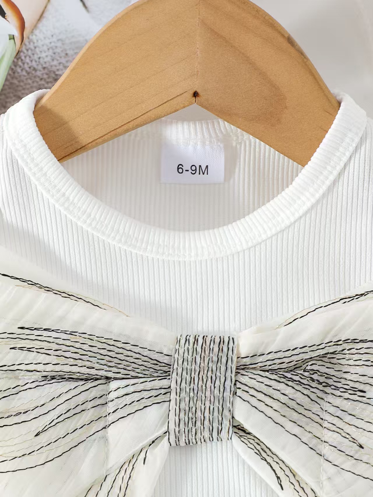 아동복 해외 유럽 및 미국 스타일 여아용 흰색 리본 셔츠+검정 케이크 스커트 세트