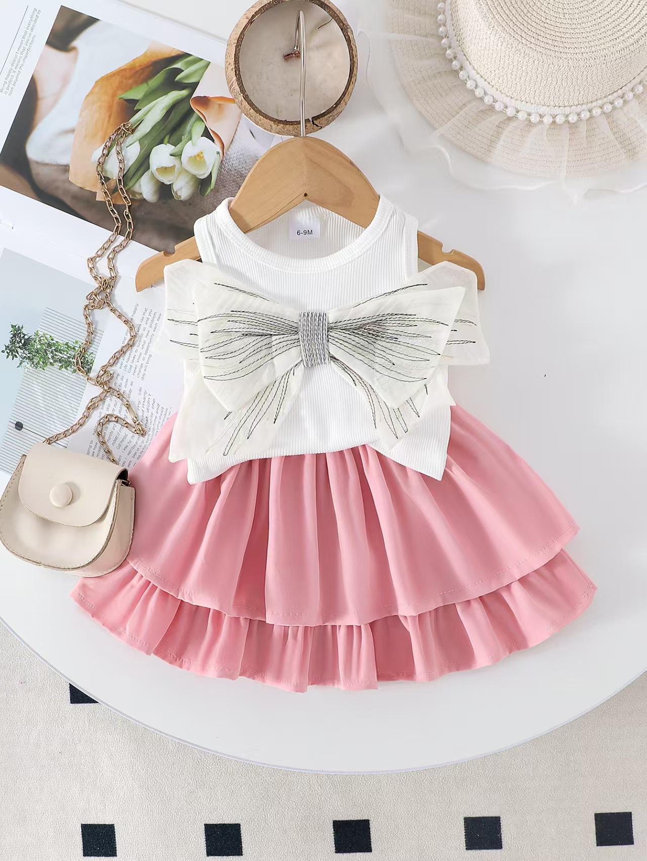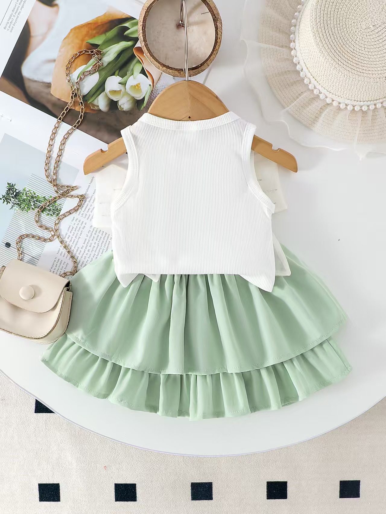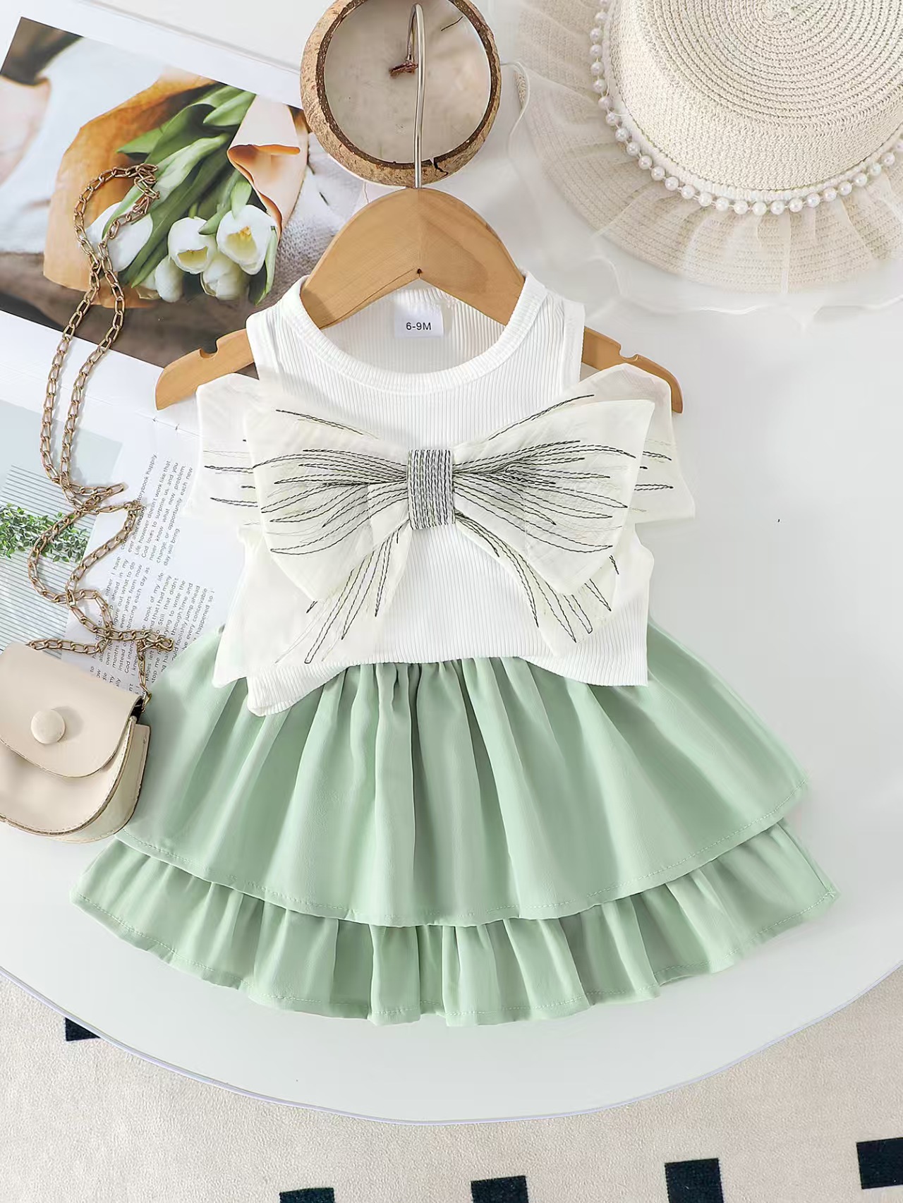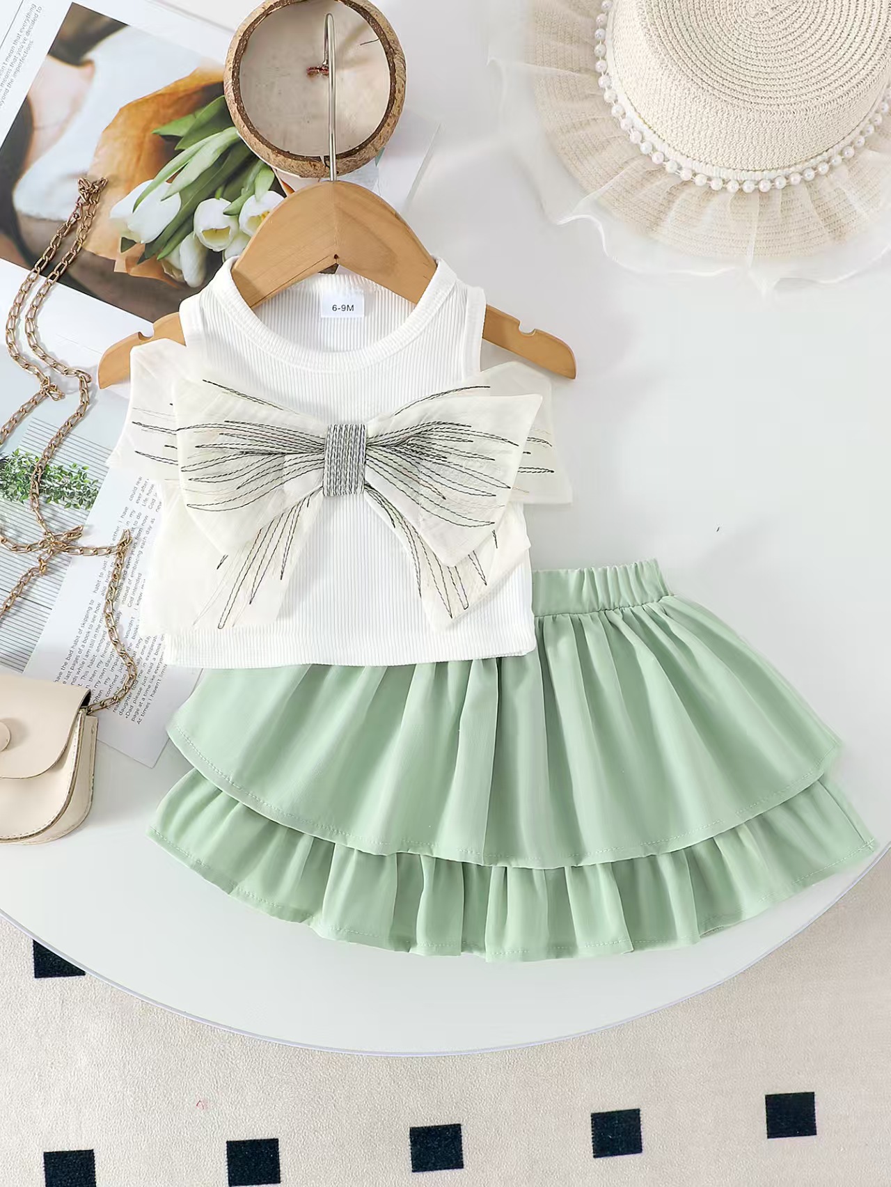 아동복 해외 유럽 및 미국 스타일 여아용 흰색 리본 셔츠+검정 케이크 스커트 세트
