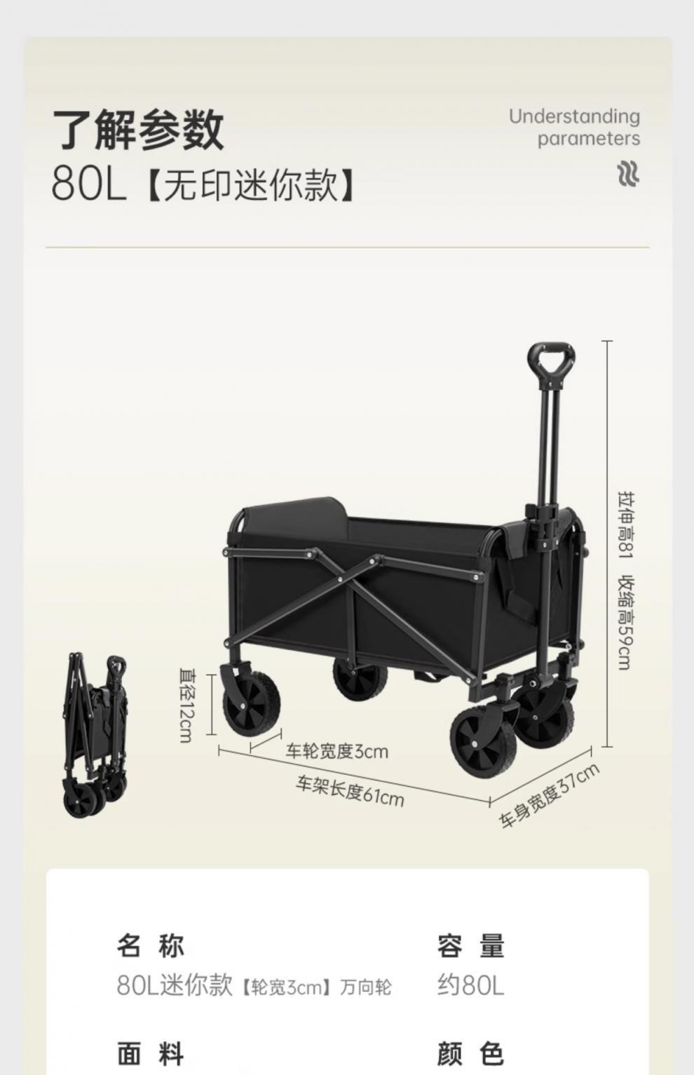 야외 캠핑 자동차 접이식 캠핑 자동차 트롤리 피크닉 소형 트레일러 휴대용 캠핑 트롤리 경량 모임스토어 가기