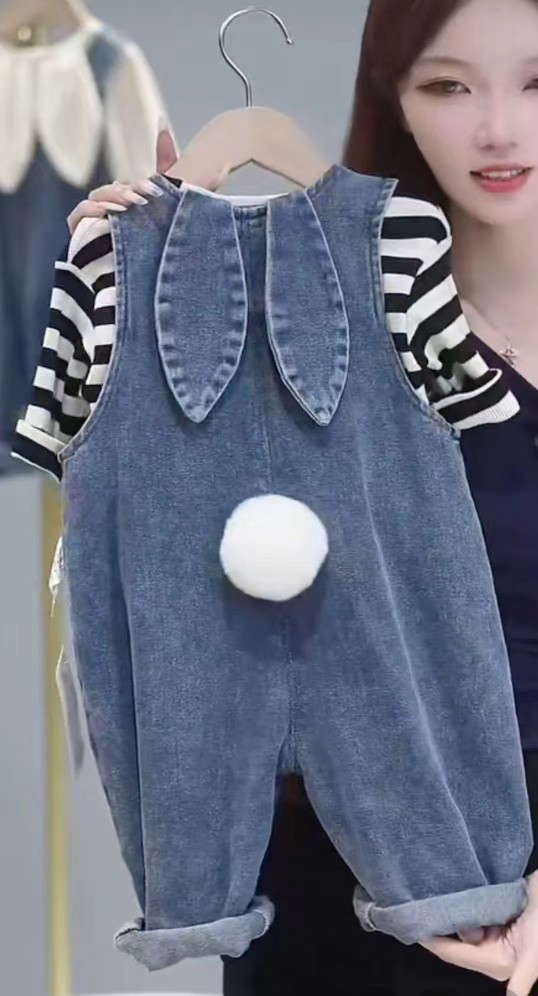 • 데님 블루 토끼 귀 작업복