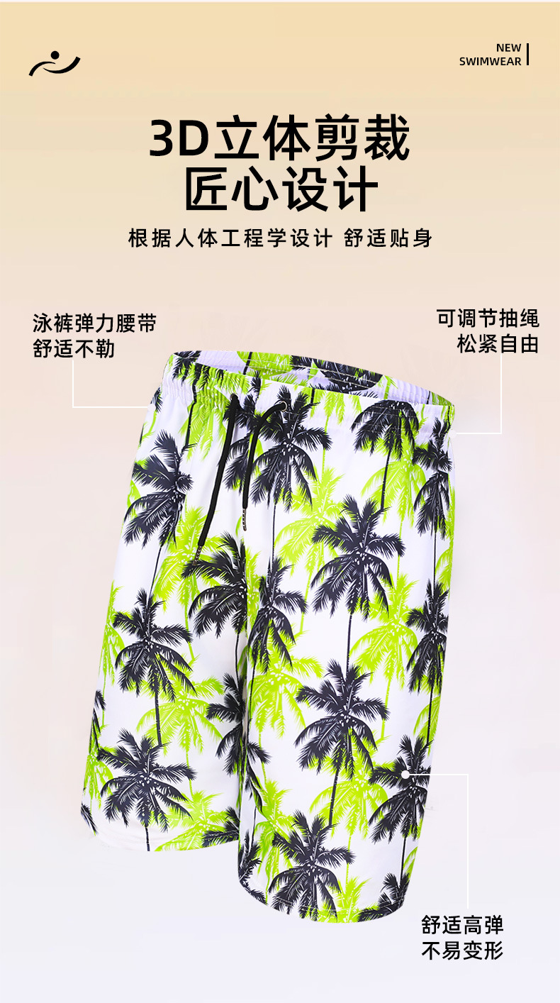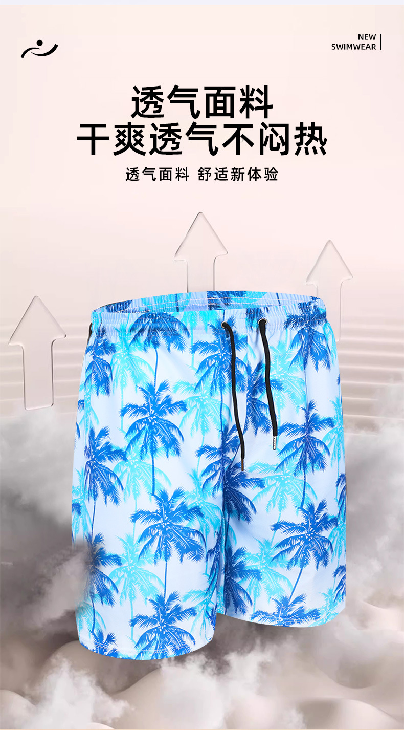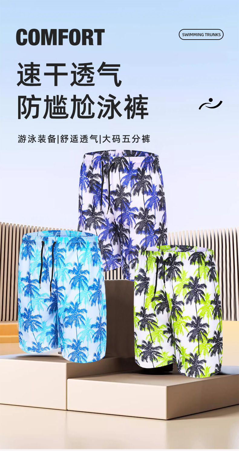 성인용 남성 여름 통기성 대형 수영복 코코넛 프린트 루즈핏 야외 비치 팬츠 도매스토어 가기