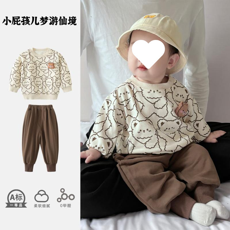 소년 세트 가을 남자 아기 옷 봄과 가을 한국식 아기 땀 어린이 의류 어린이 투피스 세트스토어 가기