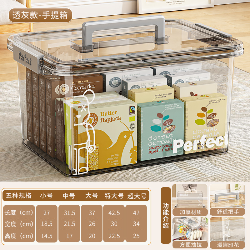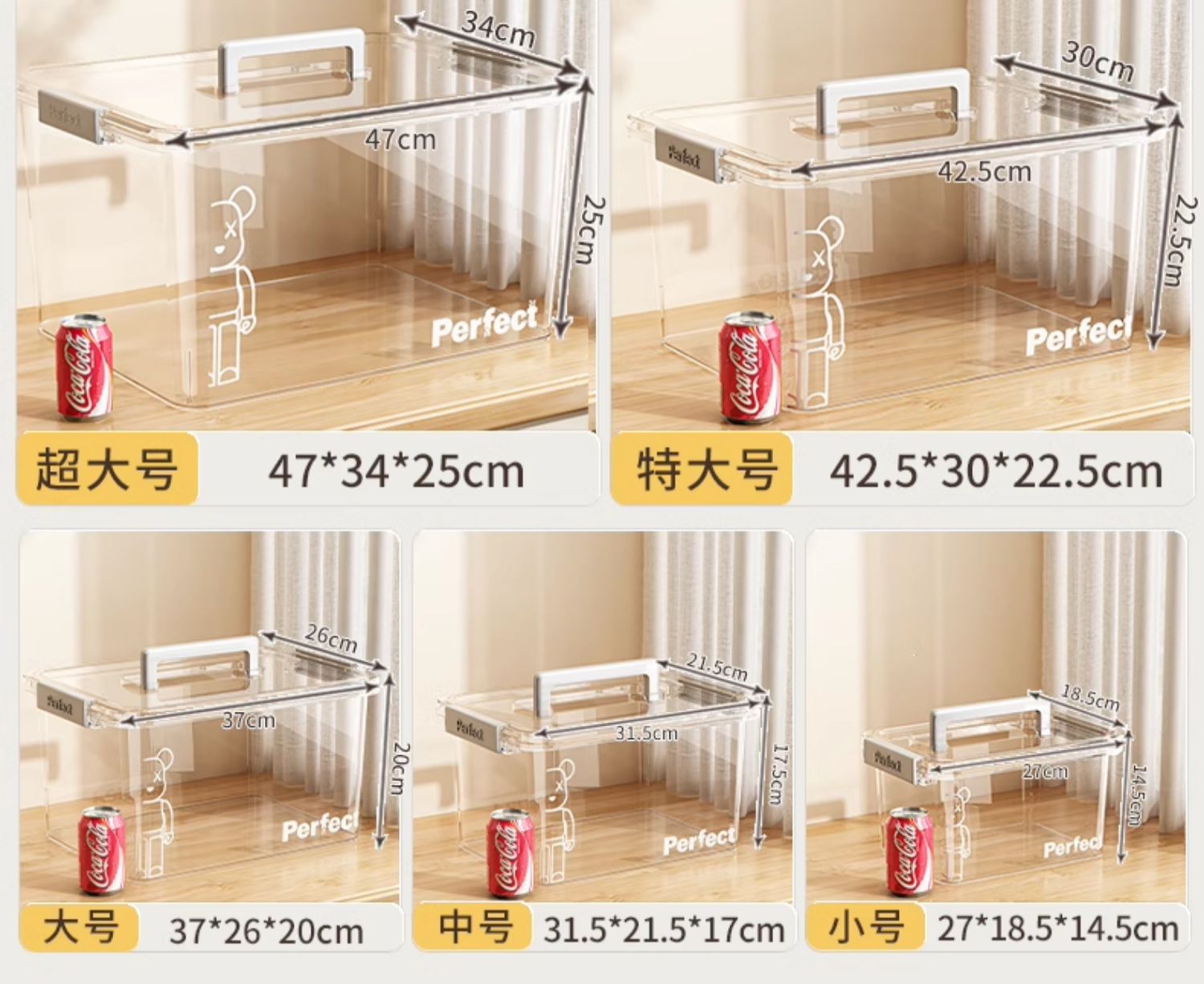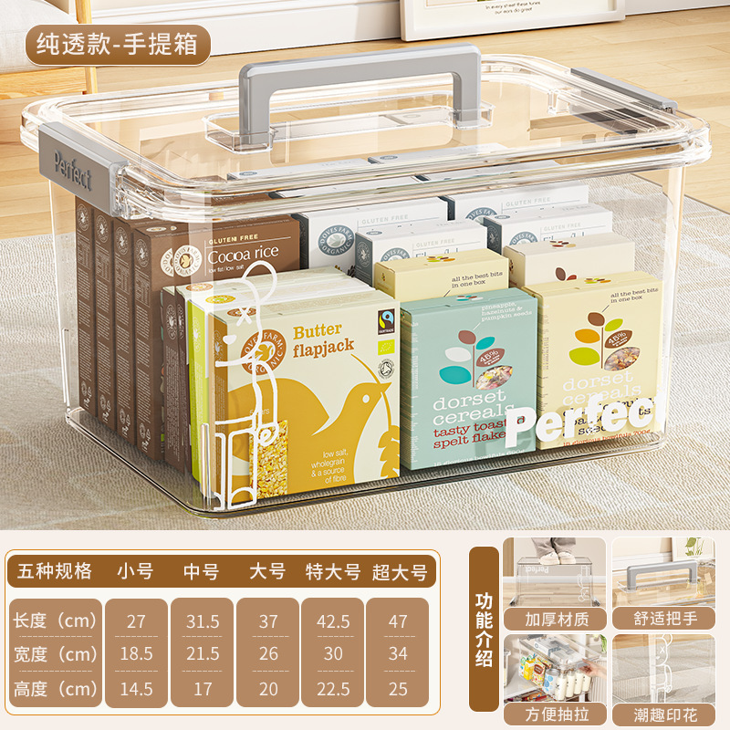휴대용 투명 저장 상자 가정용 두꺼운 옷 장난감 간식 책 대용량 주최자 플라스틱 보관 바구니