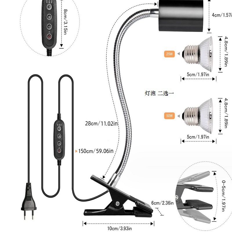 거북이 가열 칼슘보충 UVA 파충류용 이중 헤드 램프 애완동물 난방 보온 램프 도마뱀 태양등 어항 램프스토어 가기