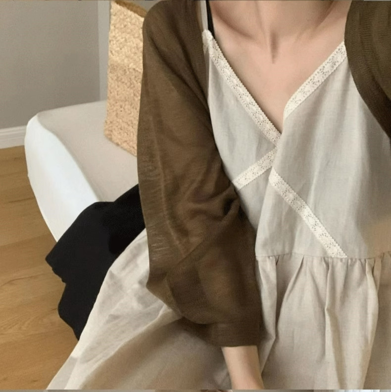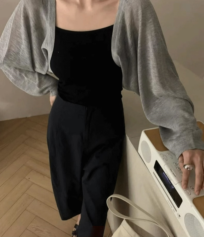 프랑스 스타일 웨이슬 아이스 실크 니트 스웨터 선스크린 카디건 여성의 얇은 목도리 여름 슬링 외부 스트랩 탑 블라우스스토어 가기