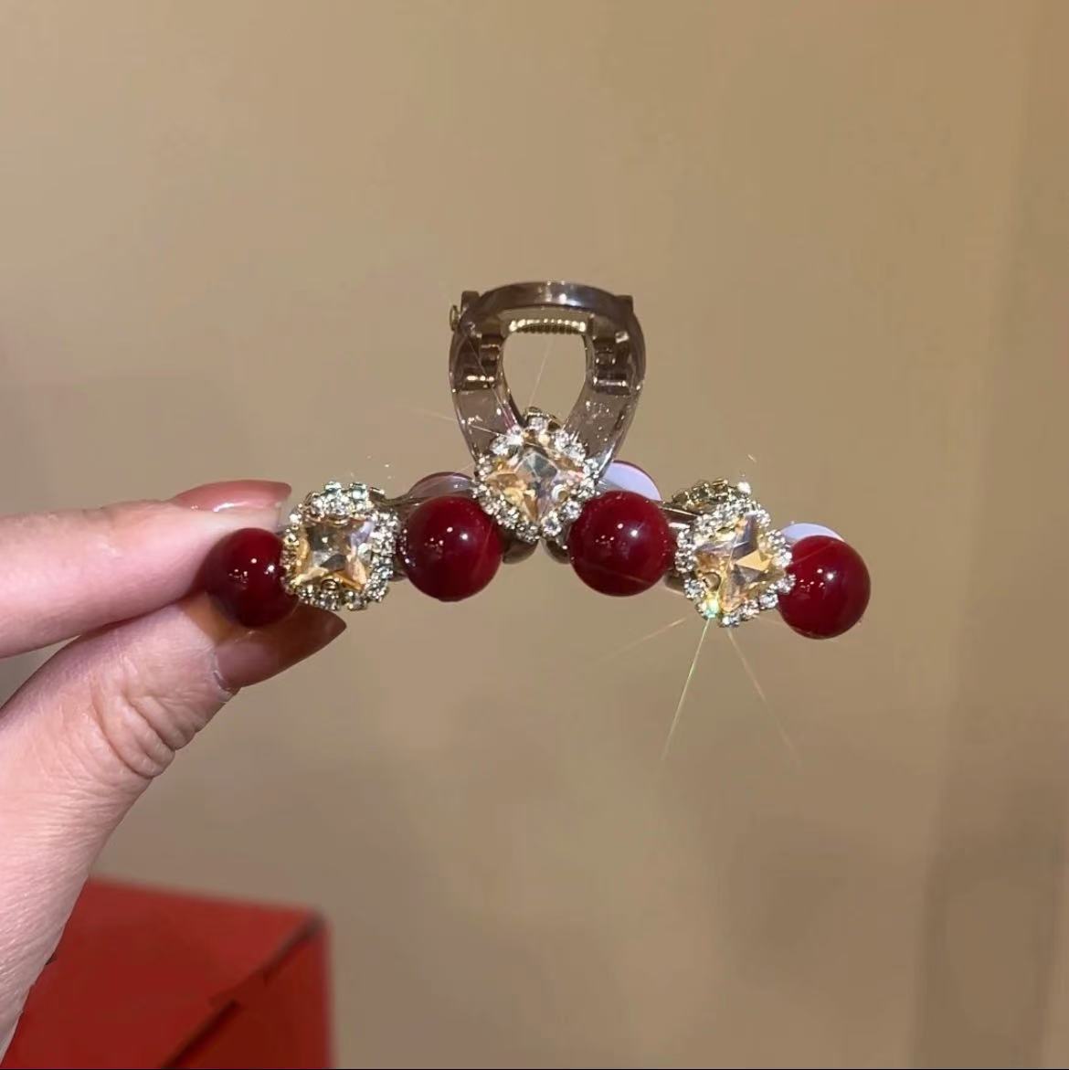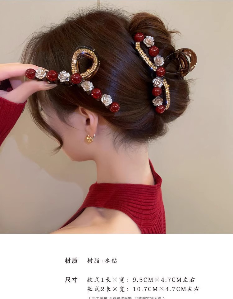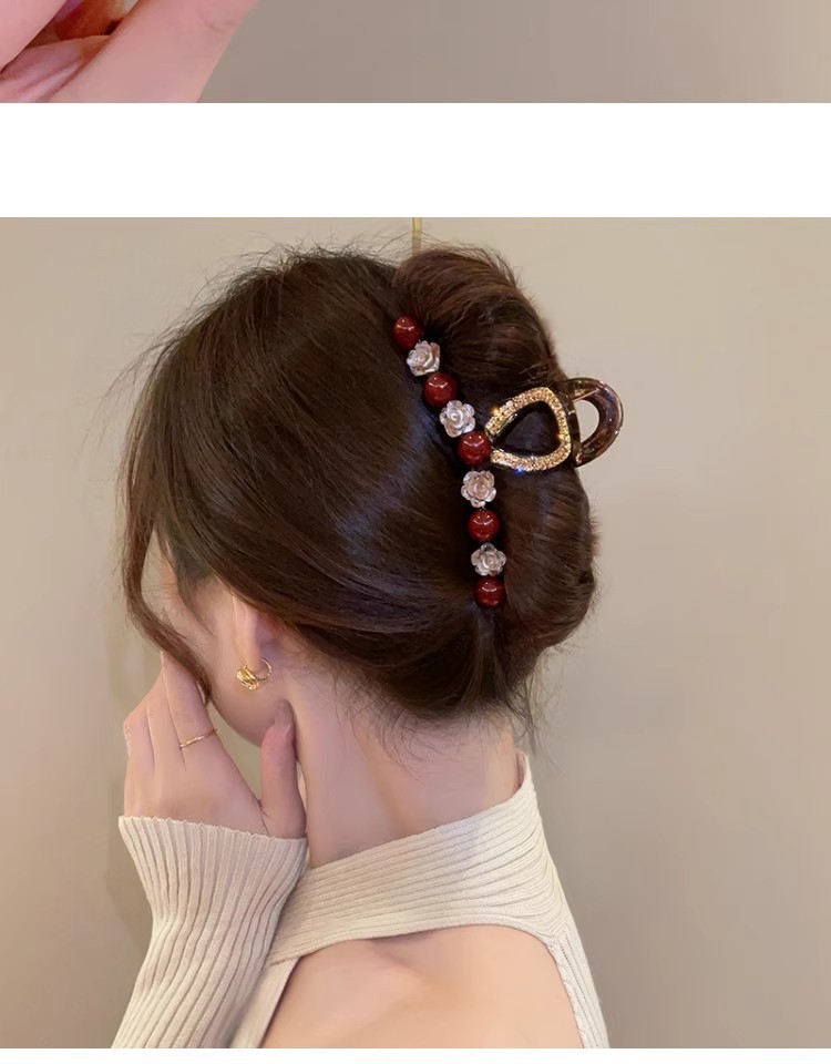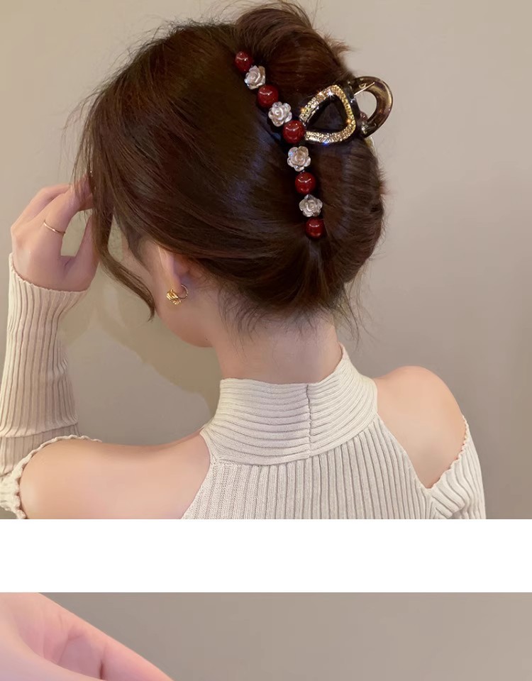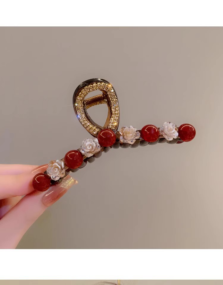 Ankora 로즈 레드 비즈 잡아 클립 여성용 2025 가을 겨울 새로운 패션 올 매치 백엔드 헤어 클립 헤어 액세서리스토어 가기