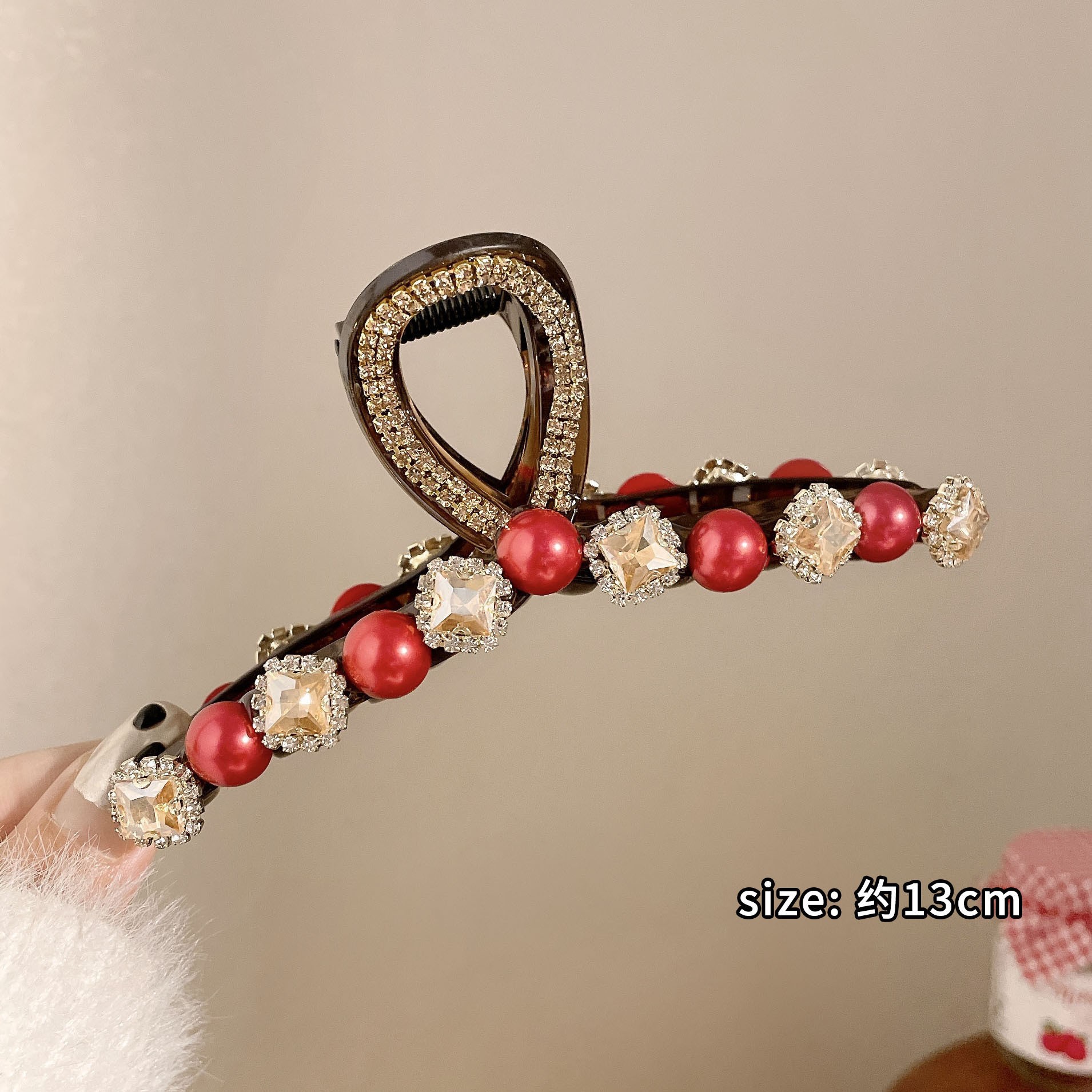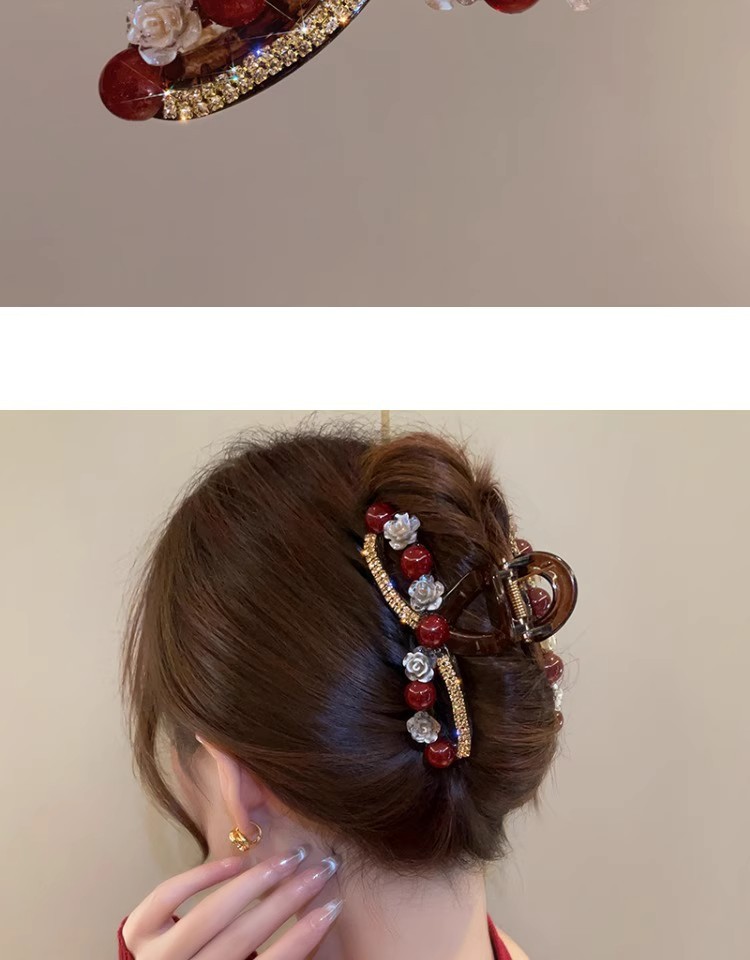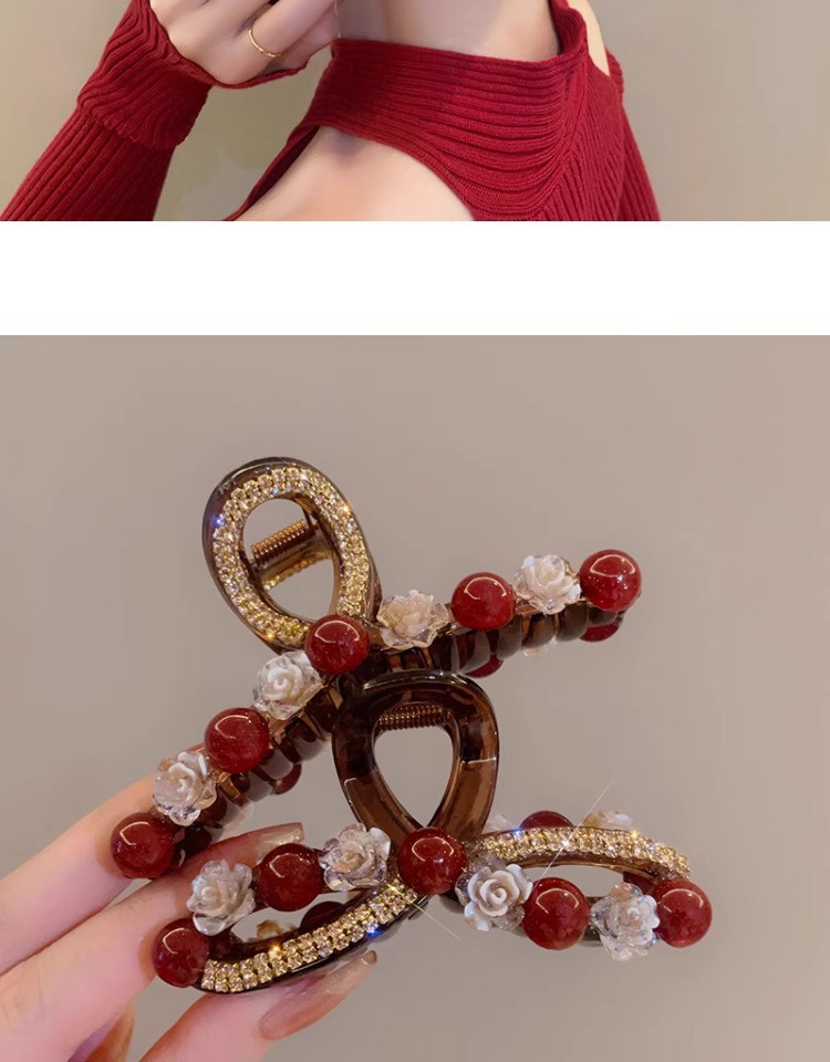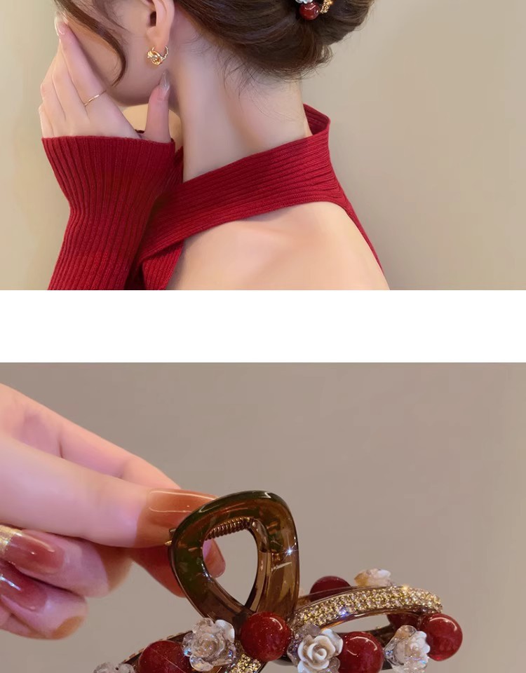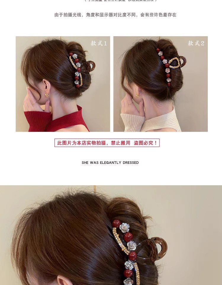 Ankora 로즈 레드 비즈 잡아 클립 여성용 2025 가을 겨울 새로운 패션 올 매치 백엔드 헤어 클립 헤어 액세서리스토어 가기
