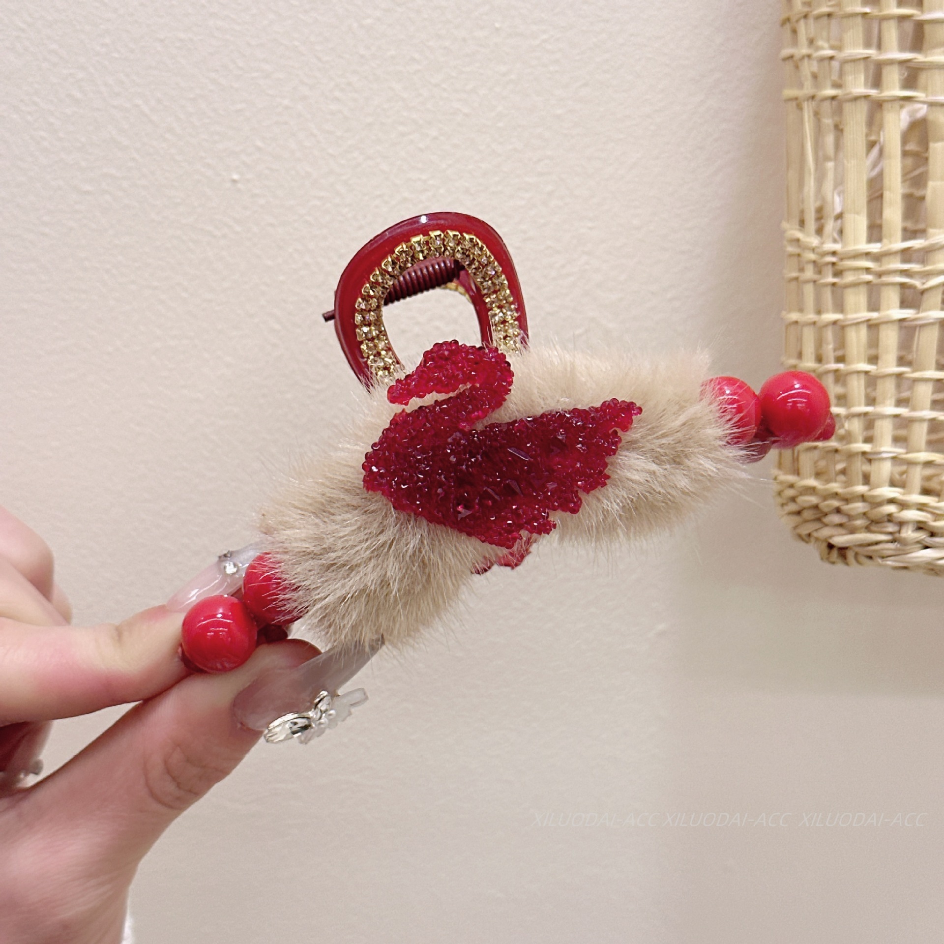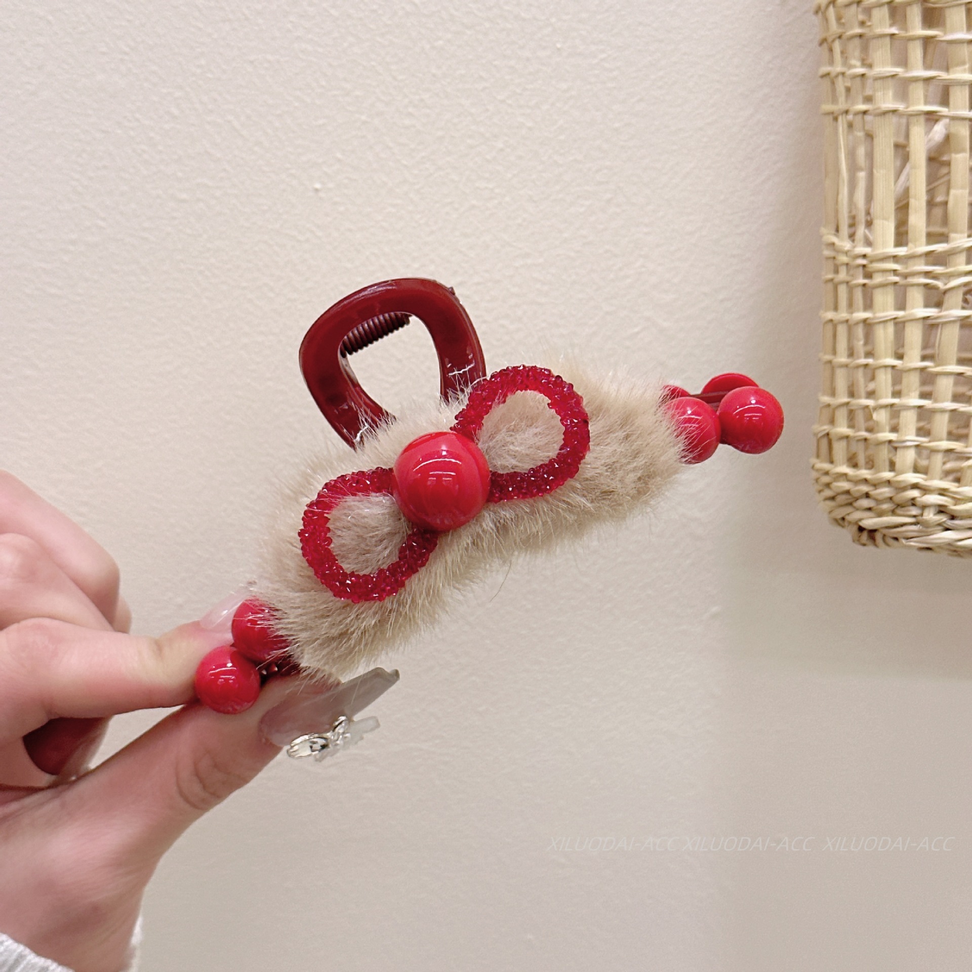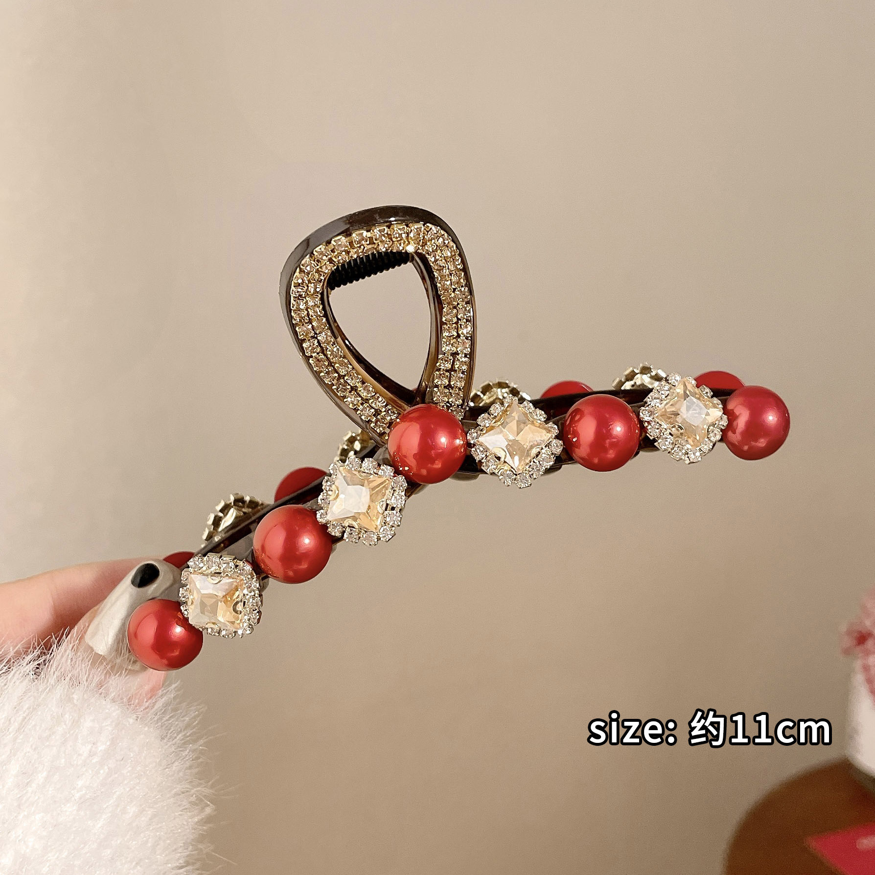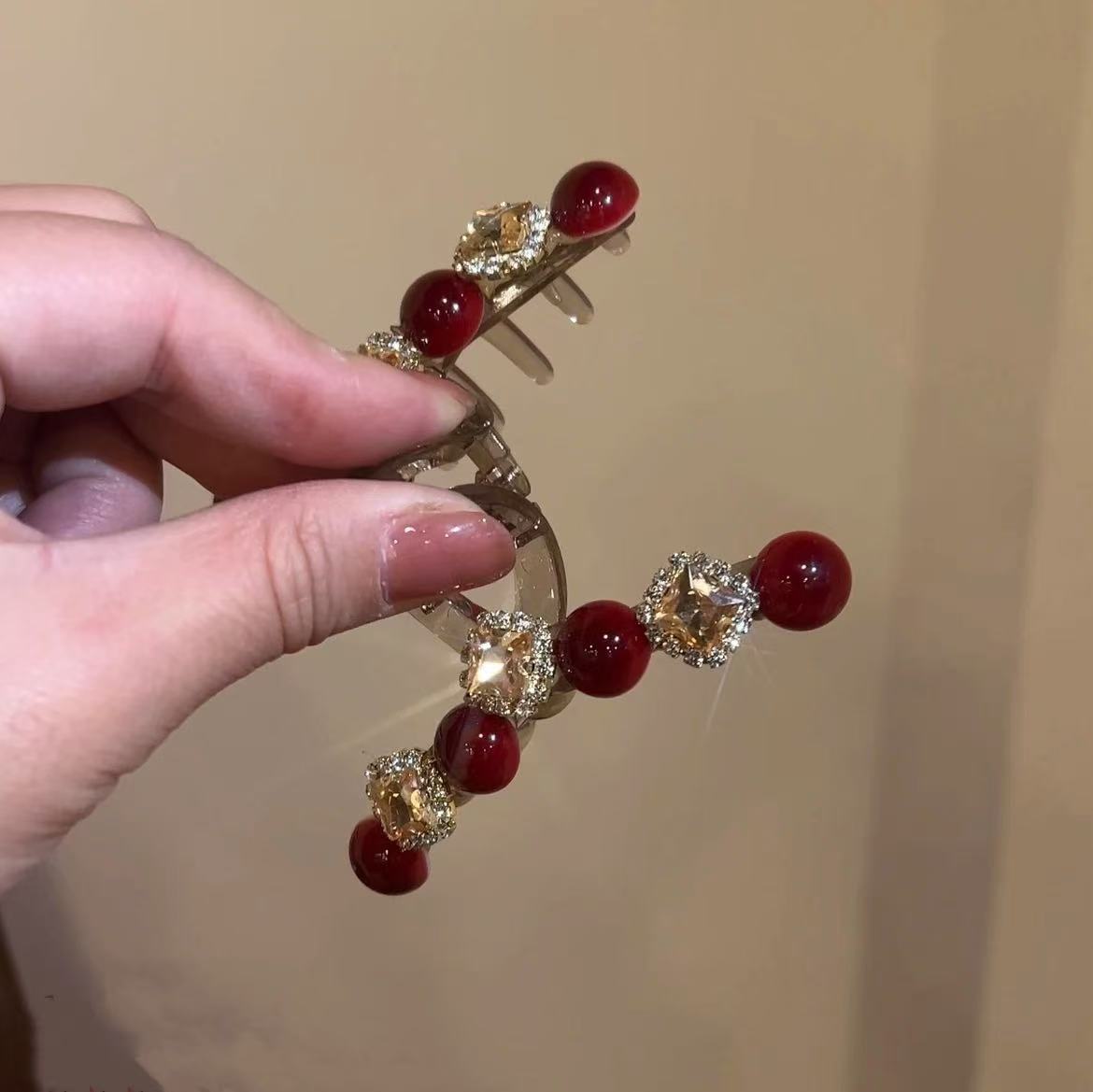 Ankora 로즈 레드 비즈 잡아 클립 여성용 2025 가을 겨울 새로운 패션 올 매치 백엔드 헤어 클립 헤어 액세서리스토어 가기