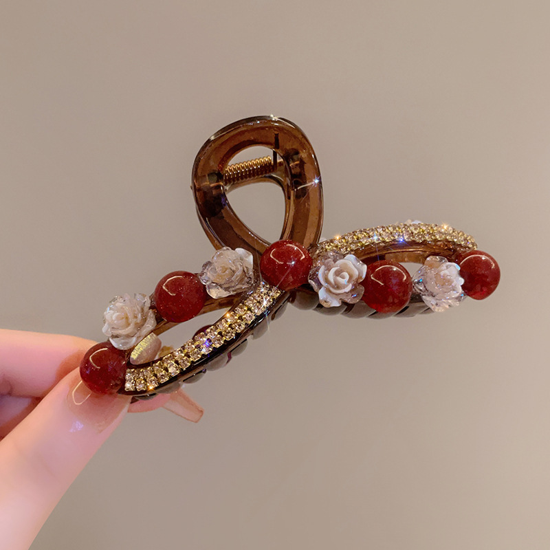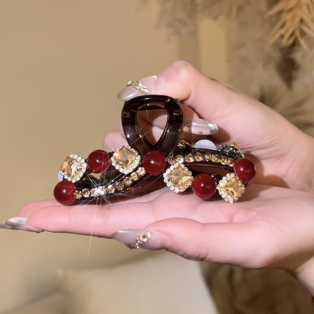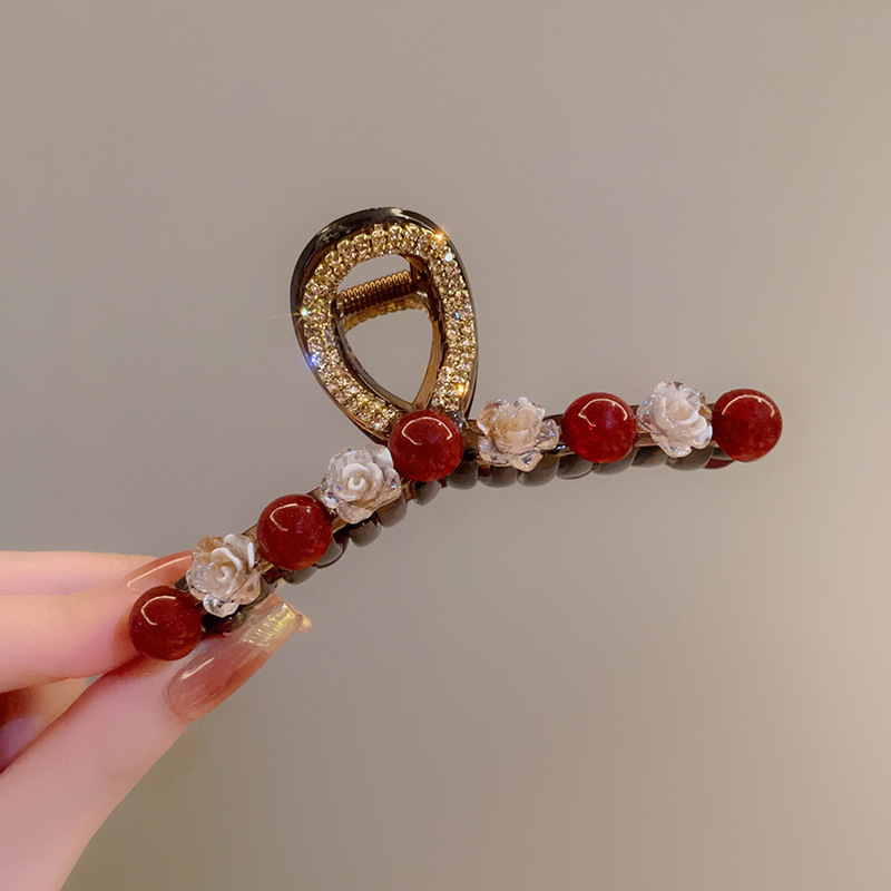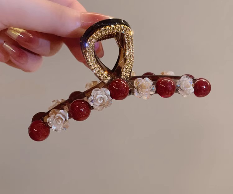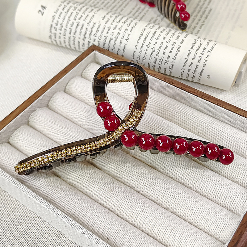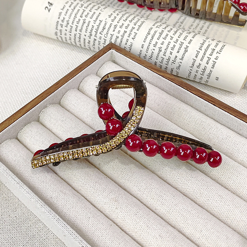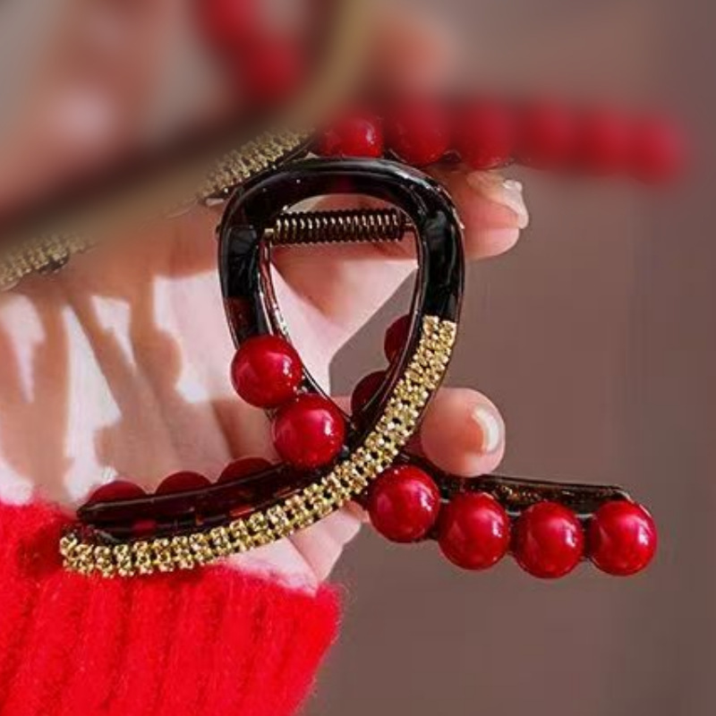 Ankora 로즈 레드 비즈 잡아 클립 여성용 2025 가을 겨울 새로운 패션 올 매치 백엔드 헤어 클립 헤어 액세서리