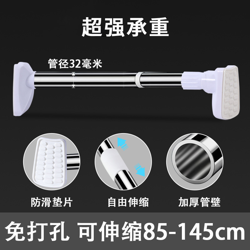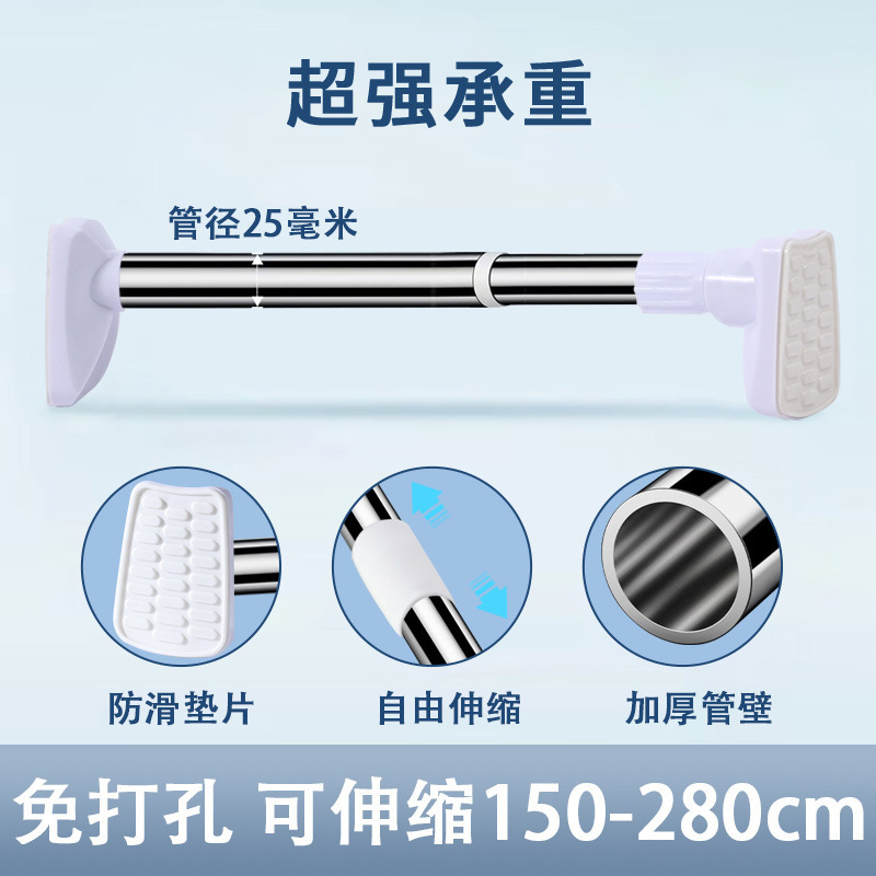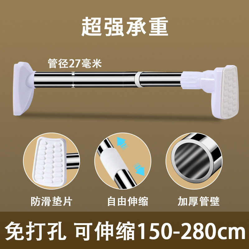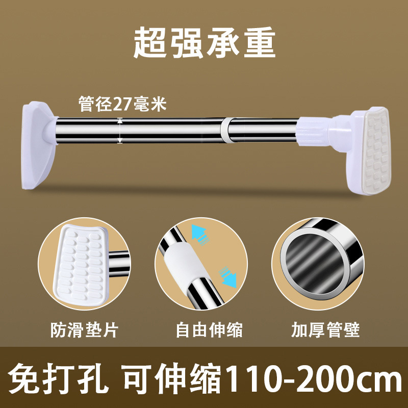 텔레스코픽 로드 노 드릴링 옷 건조 막대 커튼 막대 욕실 지원 막대 옷장 매달려 막대 스테인레스 스틸 리프팅 및 수축 막대