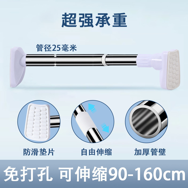텔레스코픽 로드 노 드릴링 옷 건조 막대 커튼 막대 욕실 지원 막대 옷장 매달려 막대 스테인레스 스틸 리프팅 및 수축 막대스토어 가기