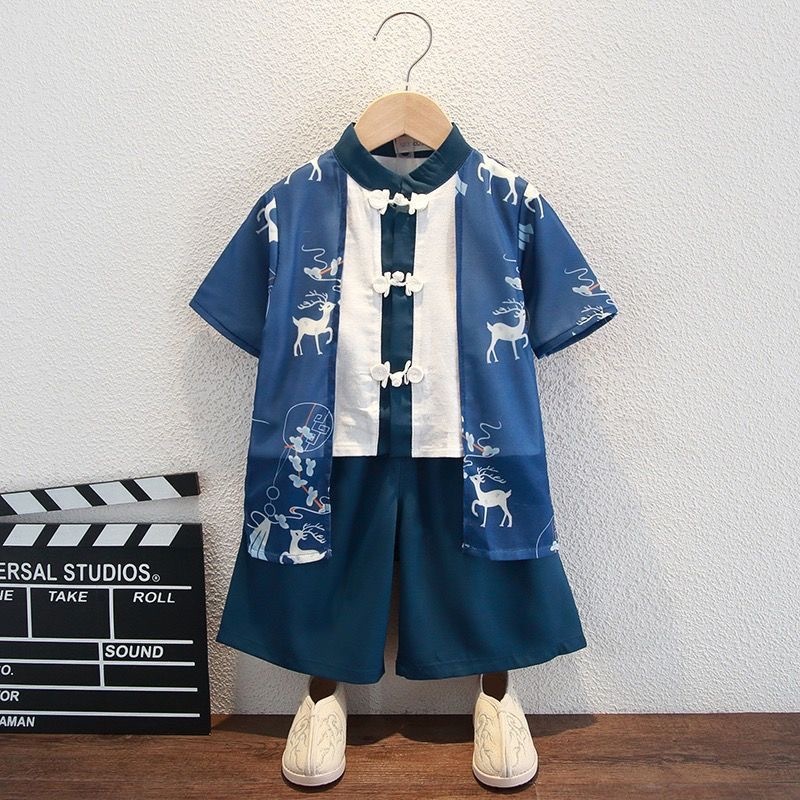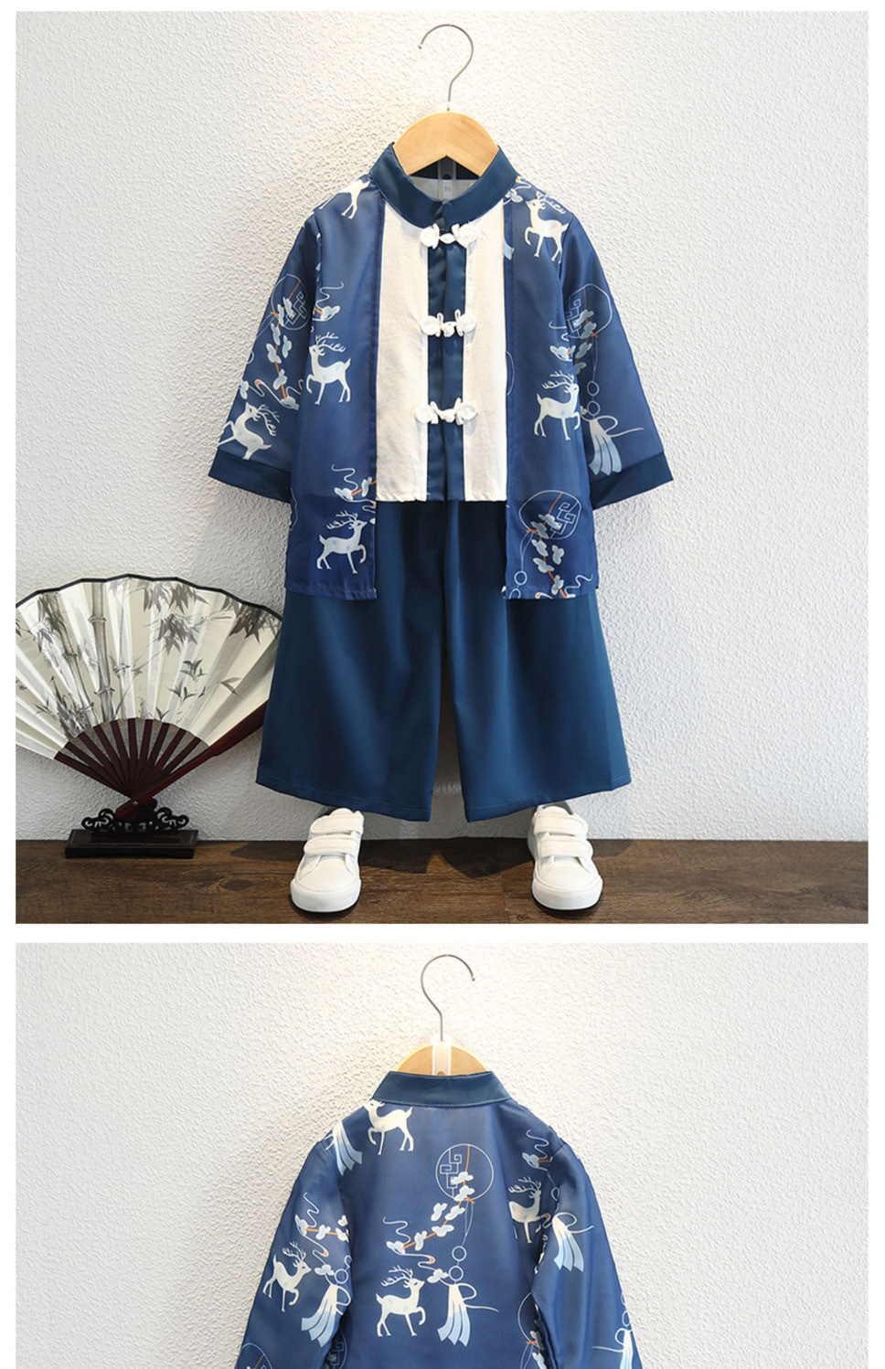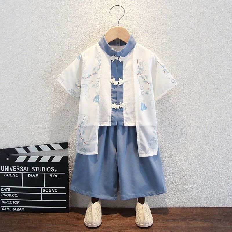 한푸 소년 중국 스타일 봄과 가을 소년 베이비 탕 세트 주니어 세트 어린이 골동품 무술 세트 여름 투피스 세트