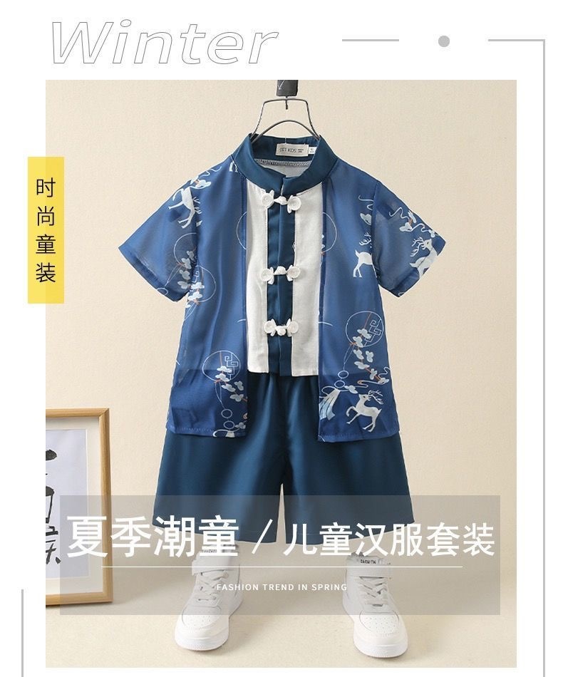 한푸 소년 중국 스타일 봄과 가을 소년 베이비 탕 세트 주니어 세트 어린이 골동품 무술 세트 여름 투피스 세트스토어 가기