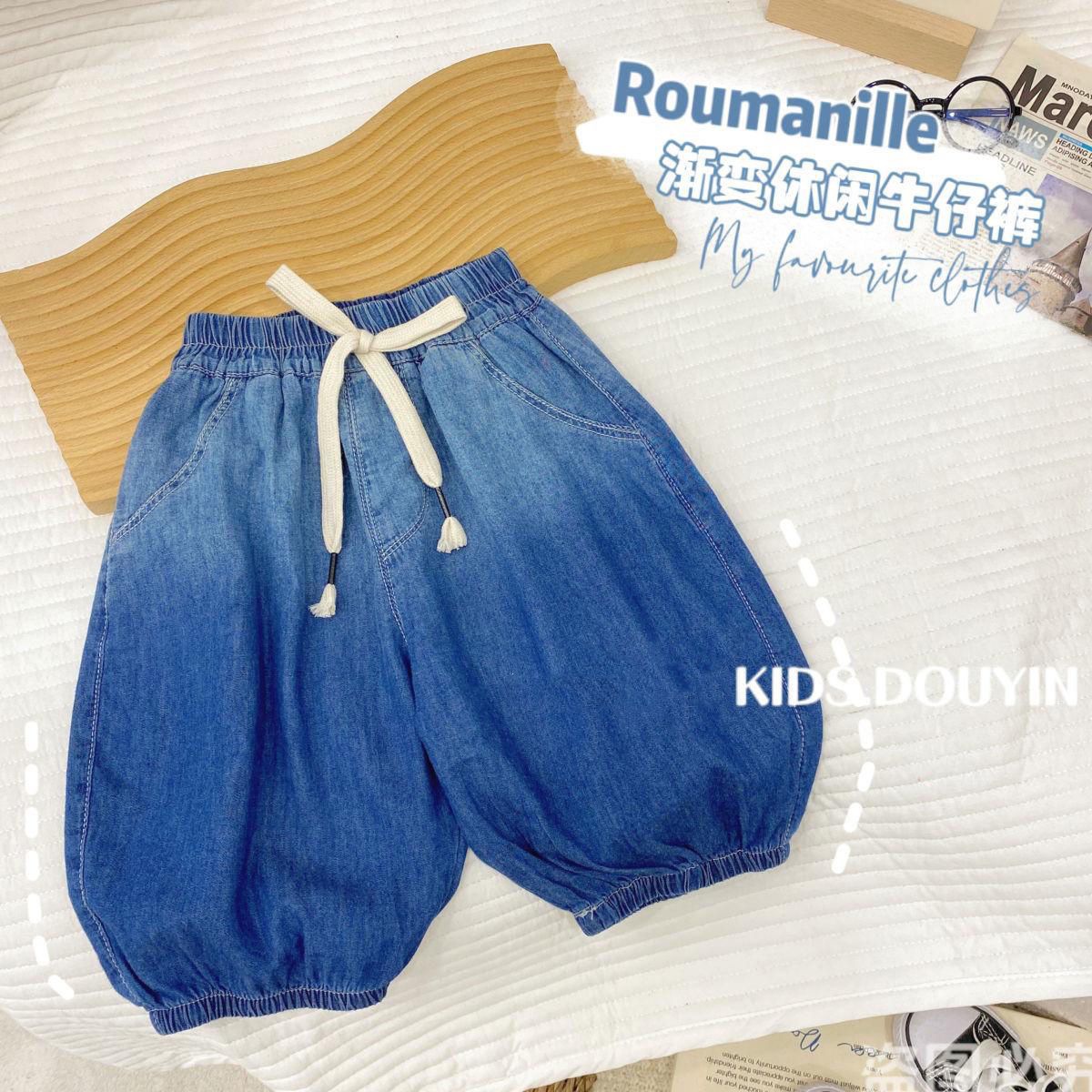 소년 소녀 여름 청바지 아기의 서양식 어린이 맞춤형 트렌디 브랜드 한국 스타일 그라디언트 얇은 자른 바지 블루머스스토어 가기