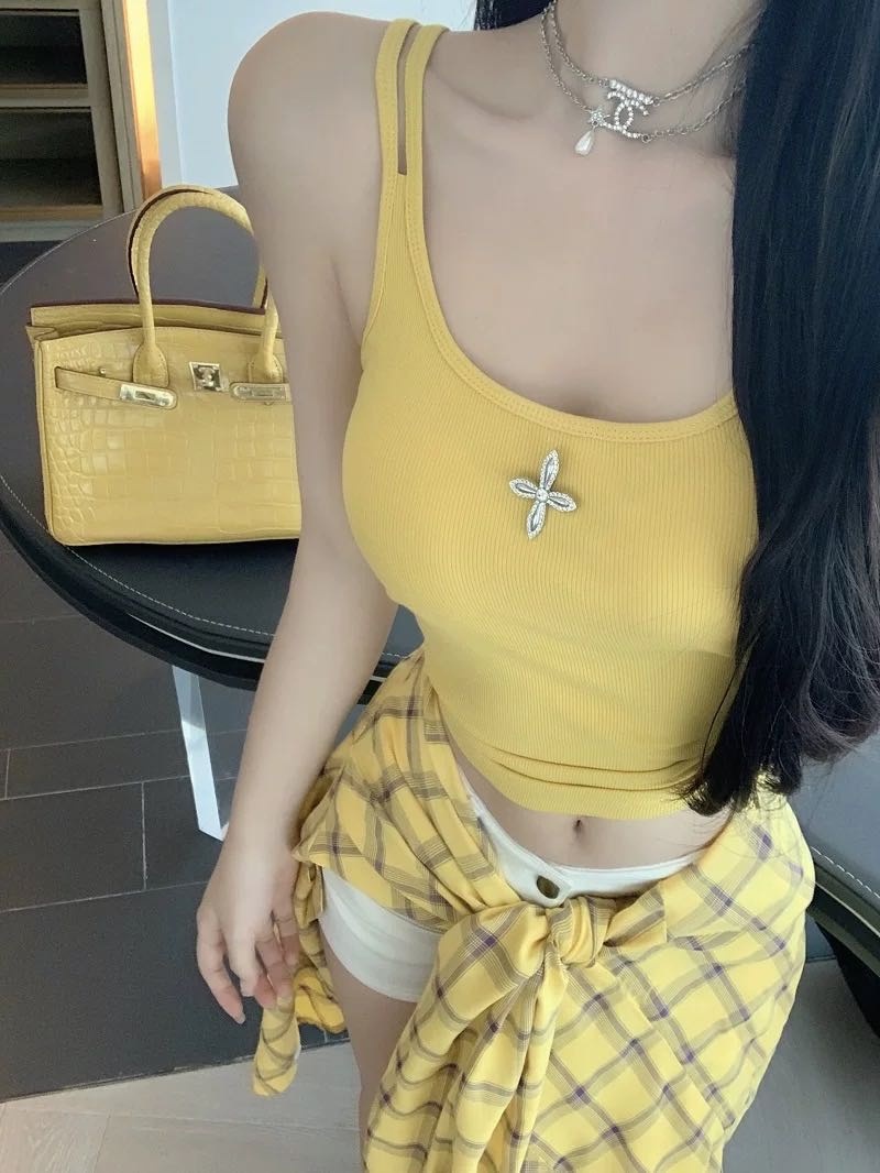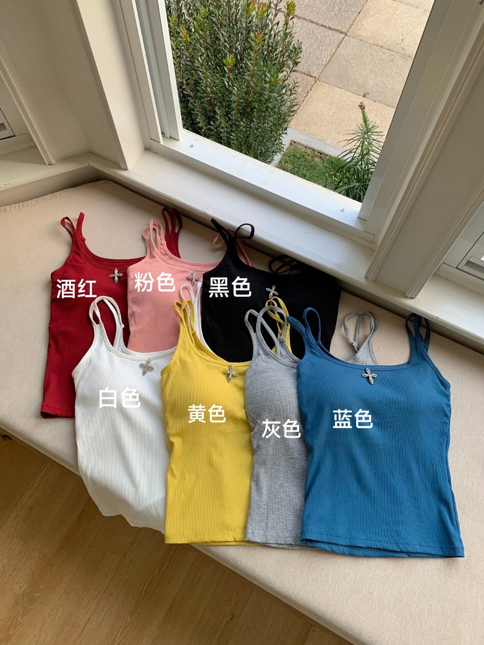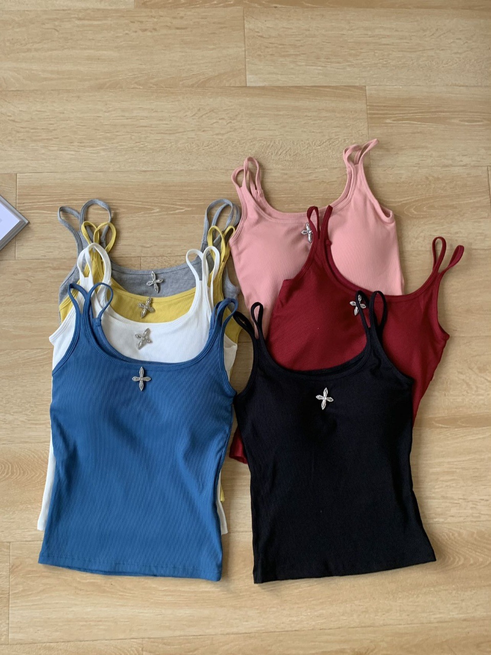 6687 스파이스 걸 카미 솔 여성 여름 가슴 패드 슬림베이스 내부 외부 탑 아름다운 뒤 더블 어깨 스트랩 트렌디스토어 가기