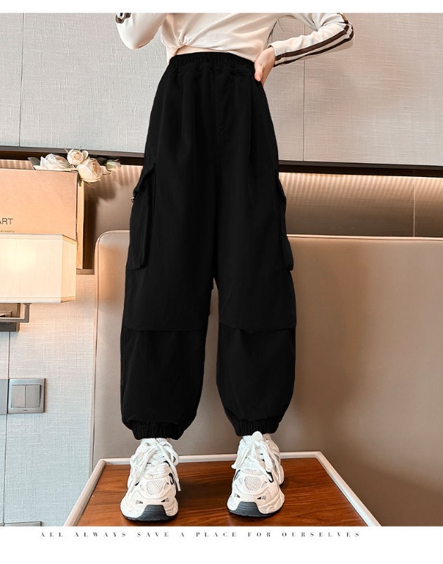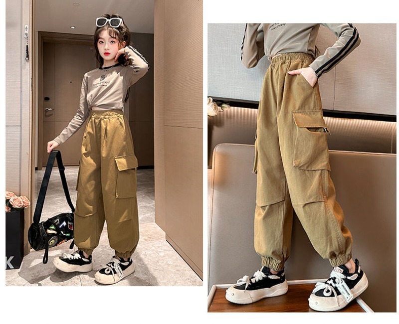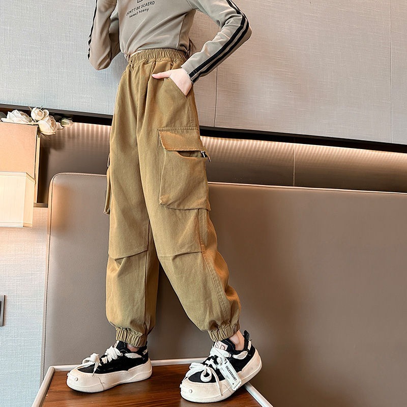 女童春秋季儿童时髦休闲长裤裤子外穿2025新款中大童黑色工装裤潮스토어 가기