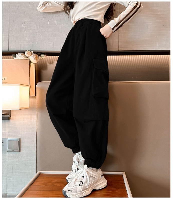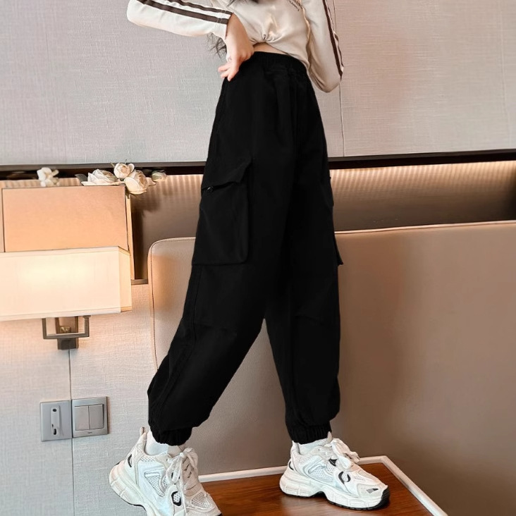 女童春秋季儿童时髦休闲长裤裤子外穿2025新款中大童黑色工装裤潮