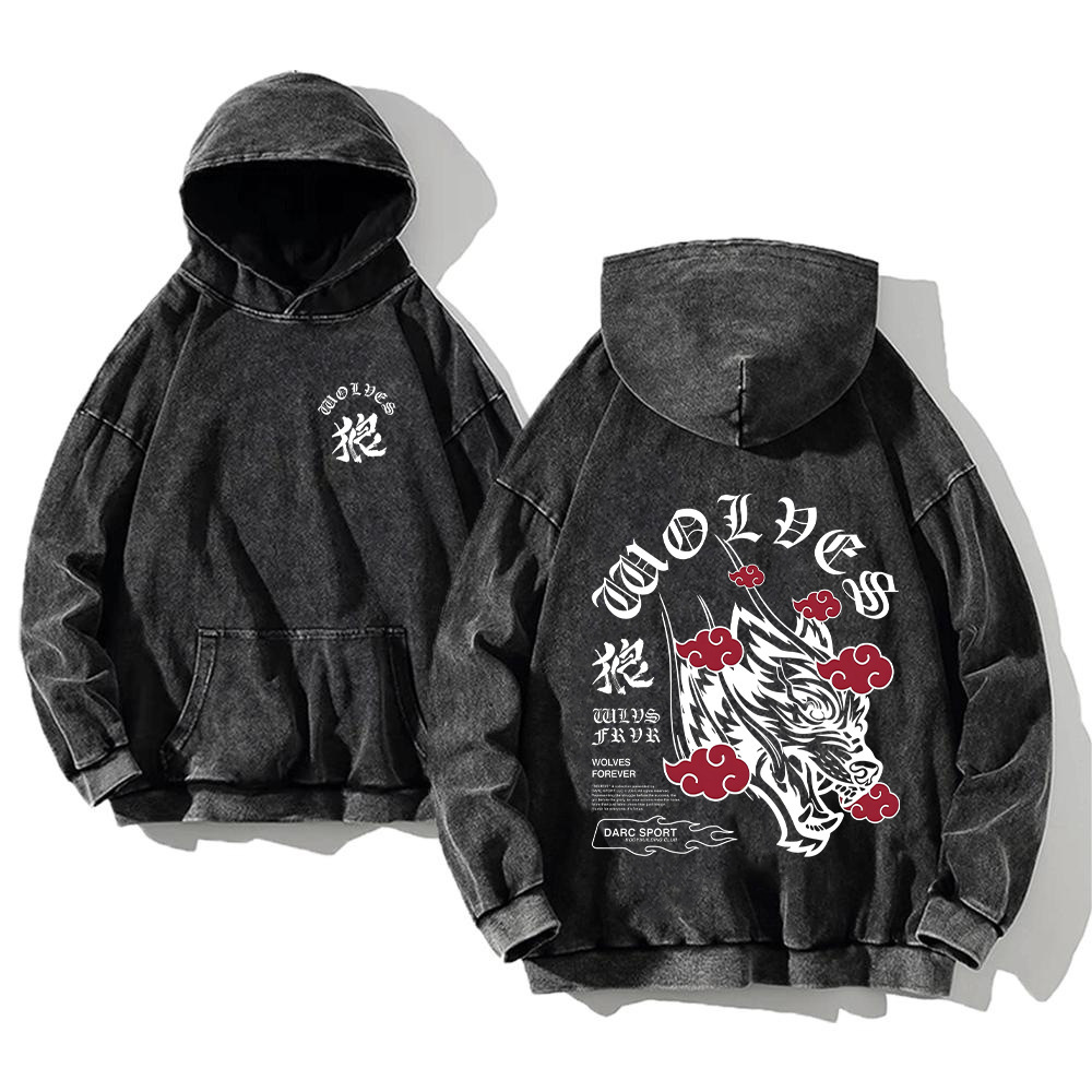 440g 무거운 씻은 늙은 남자의 긴 소매 후드 인쇄 거리 레트로 스웨터 거리 타이드 후드 스웨터