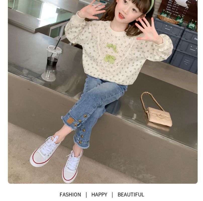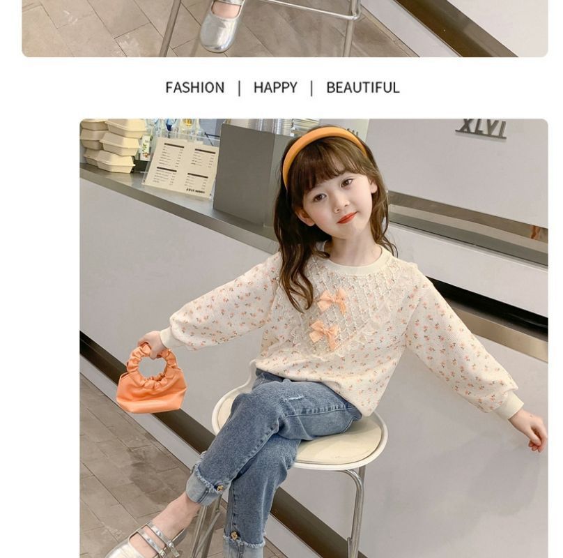 여아 가을 스웨트셔츠 2025 신상 아동 여아 봄 가을 세트 가을 긴팔 꽃무늬 상의 캐주얼 다용도