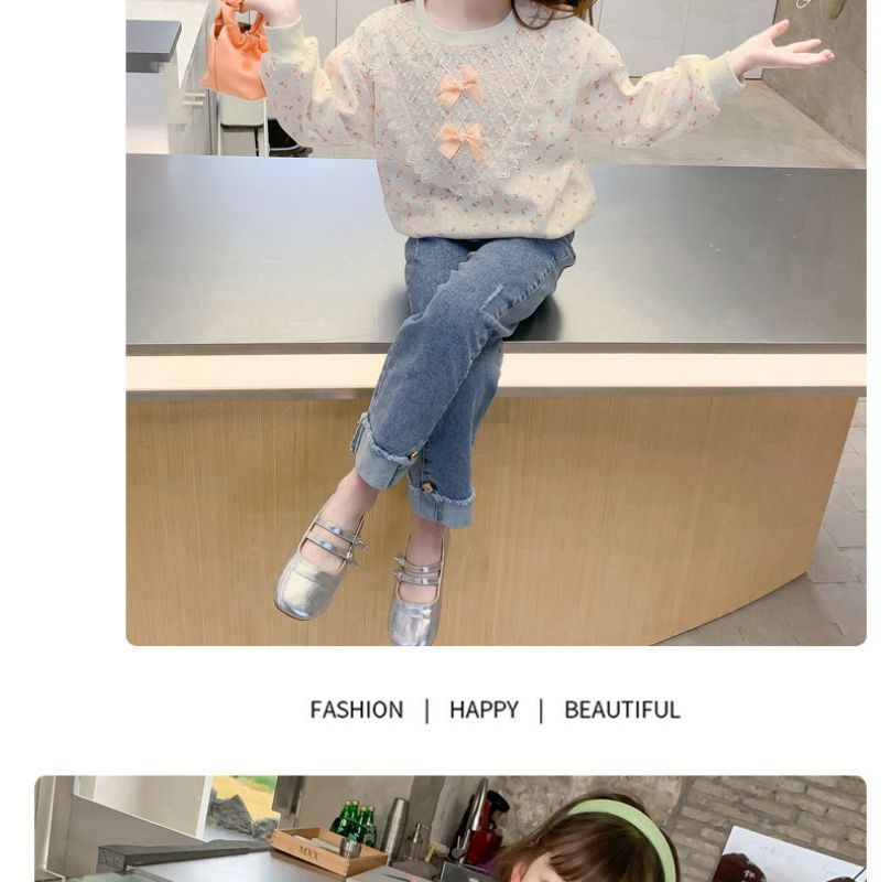여아 가을 스웨트셔츠 2025 신상 아동 여아 봄 가을 세트 가을 긴팔 꽃무늬 상의 캐주얼 다용도스토어 가기