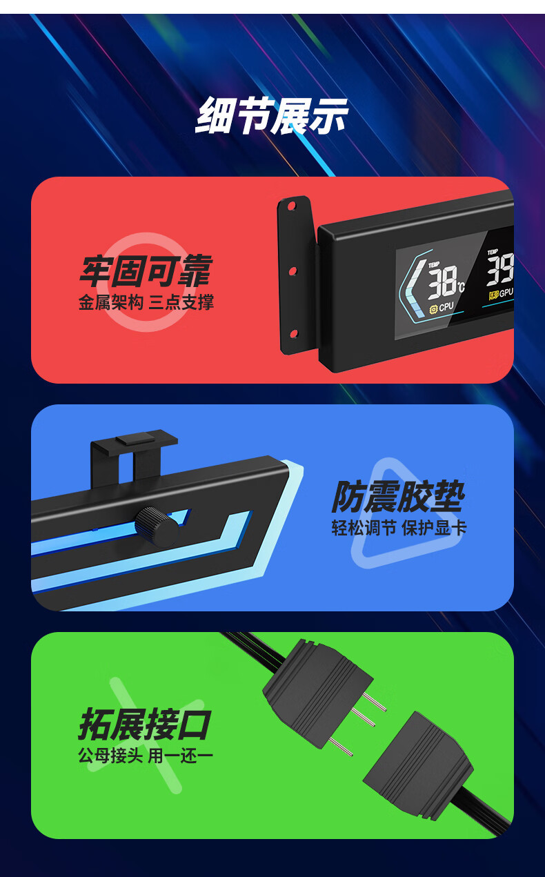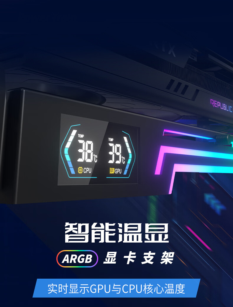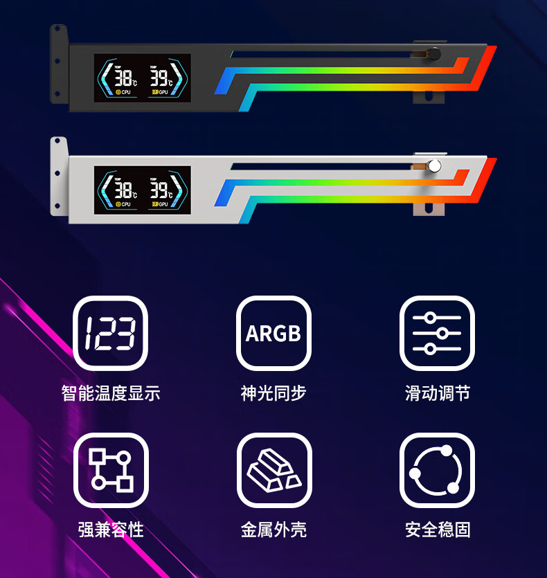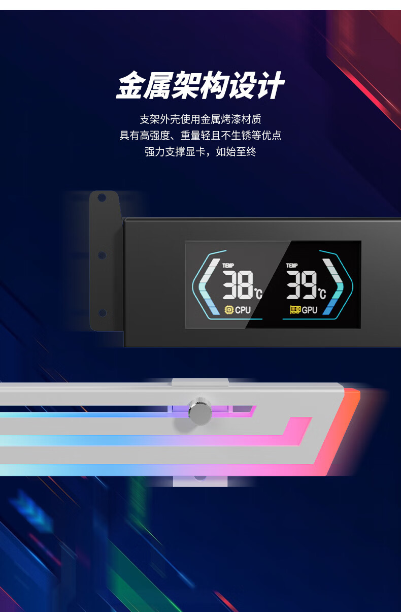 Z-X6 그래픽 카드 브래킷 ARGB Shengguang 동기 온도 디스플레이 지원 브래킷 잭 호환 40 시리즈 3 홀 고정