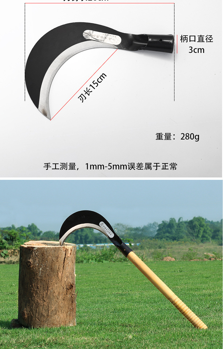 • [절단 및 절단 겸용] 망간강 황금 낫 + 39cm 원목 손잡이