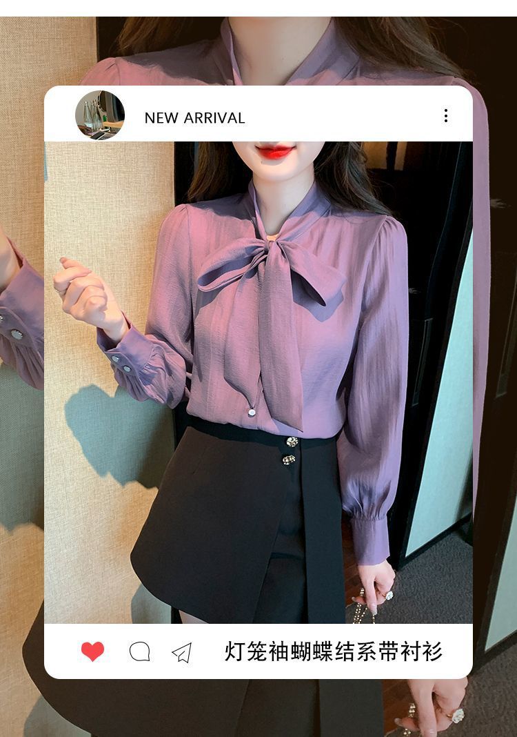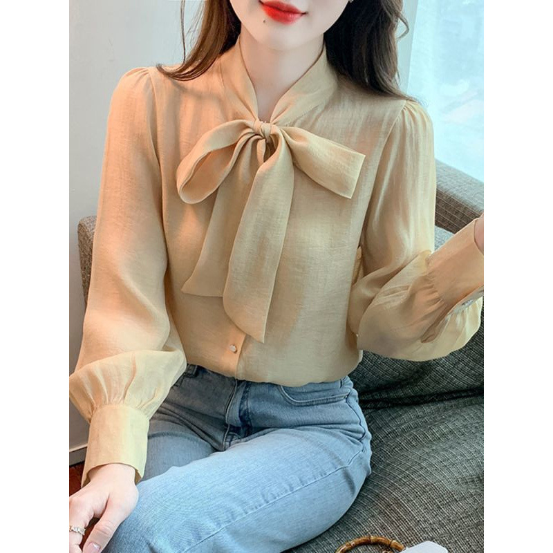 하이 엔드 센스 보우 쉬폰 긴팔 셔츠 여성의 가을 2025 년 새로운 올 매치 외국 스타일 작은 셔츠 가을 탑스토어 가기