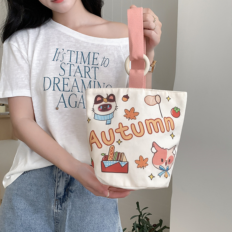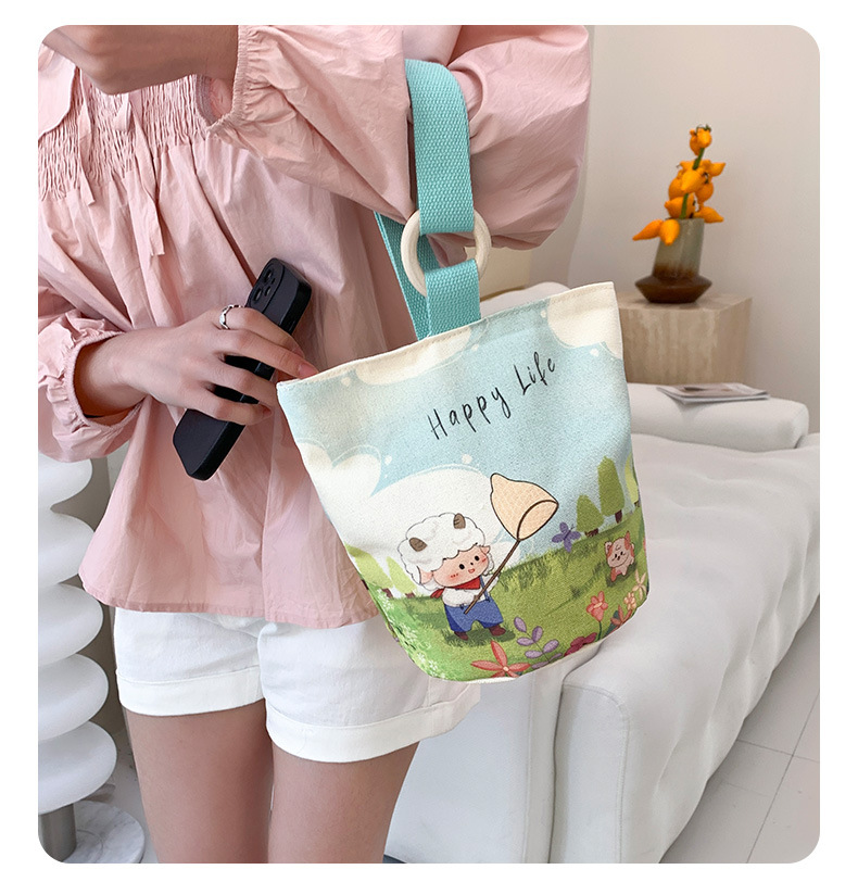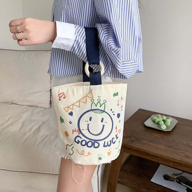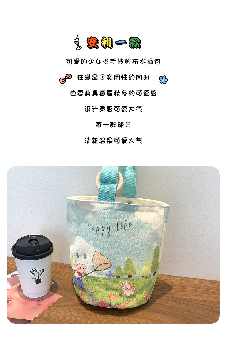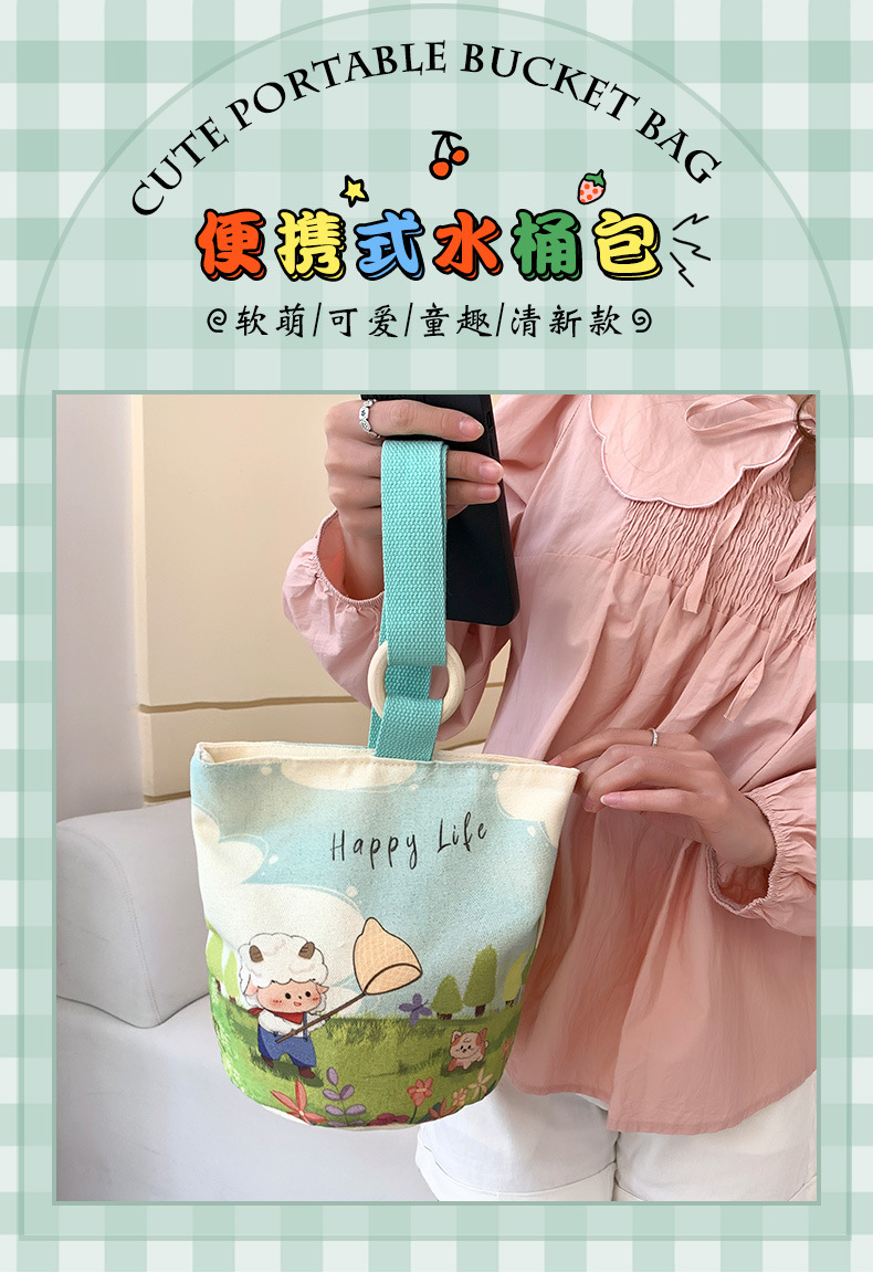 캔버스 가방 여성의 귀여운 버킷 가방 2025 봄과 여름 새로운 대용량 도시락 가방 바오마 핸드백 헤어스토어 가기