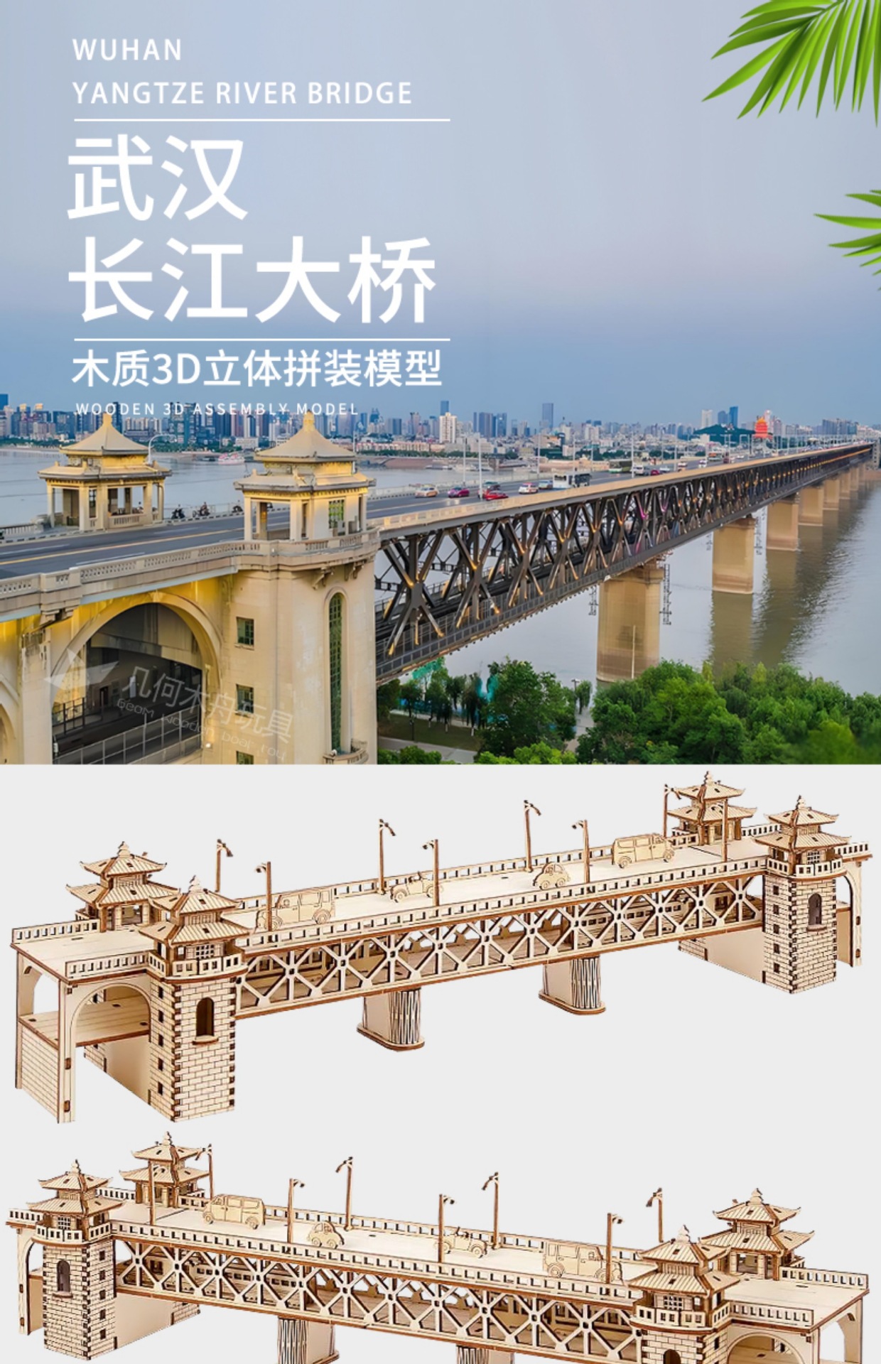 우한 양쯔강 다리 나무 3D 스테레오 조립 다리 건물 모델 나무 어린이 장난감스토어 가기
