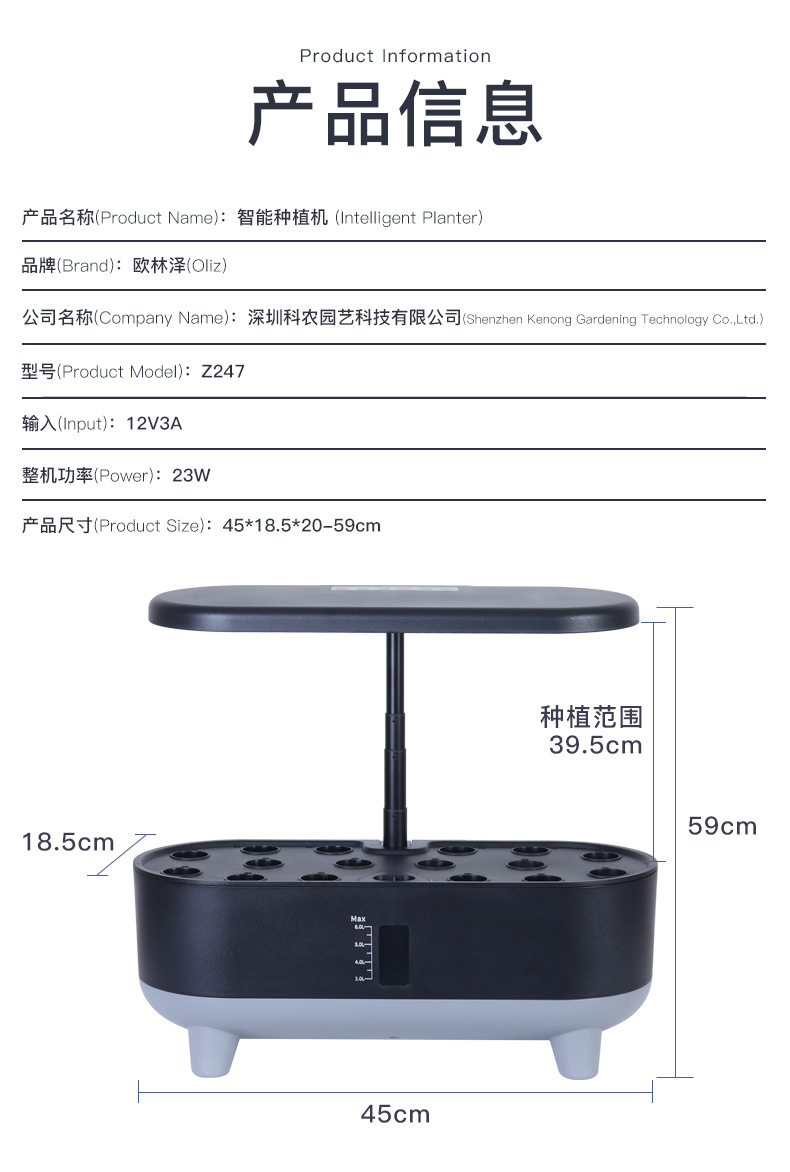 Olinze 국경 간 지능형 수경 심기 기계 지능형 화분 실내 무염 재배 인공물 실내 빛 필러